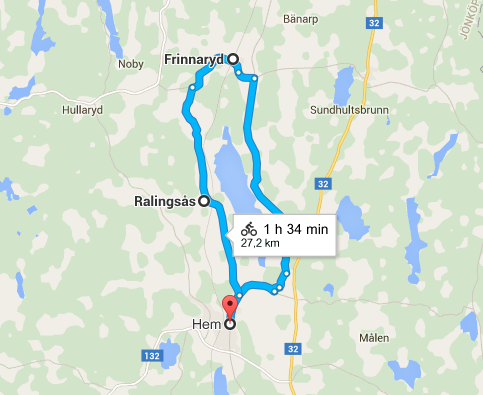 Jag har Google maps uppe på skärmen hela dagarna, dels för att beräkna avstånd och se tid för tekniker att färdas. Det är så busenkelt och bra. I husbilen sitter vi och planerar våra resor efter detta. Till bloggen gör jag bara en skärmdump.