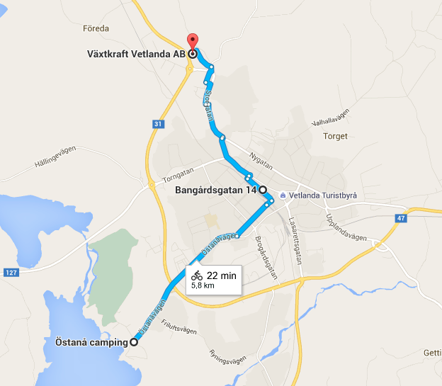 Egentligen ville jag bara åka till Växtkraft i Vetlanda, för att köpa perenner. Det var ärendet för denna resan. Innan vi cyklade dit, var vi inne på Centralhotellet, Bangårdsgatan 14, Vetlanda och betalade campingavgiften, 170:- exkl. el. Ganska smart annars att man kan boka plats på nätet, och betala in summan på Plus Giro. Då slipper man detta tråkiga med in- & utcheckning.