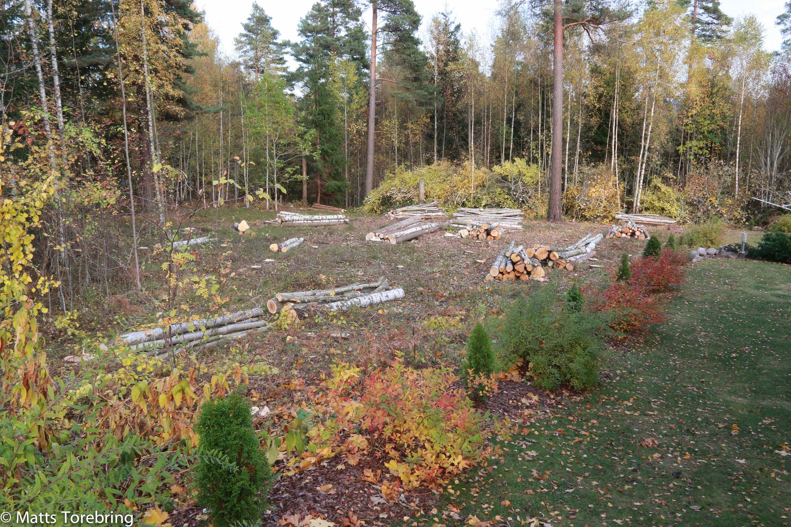 Alla som känner mig, vet ju att jag börjar inte med något, utan fortsätter till dess att det är klart. Men denna gången är det 45 år sedan, jag slutade som skogsarbetare. Även om alla moment sitter kvar i kroppen som det var i går, så är inte kraften i ben och rygg densamma. I går kväll kändes benen som stela träpåkar. Ta ned alla träd är en bagatell, men jag bär undan allt ris efter varje träd och det är riktigt jobbigt. Nu har jag bara trettio större träd kvar, varav två aspar som kommer att ta en hel dag.