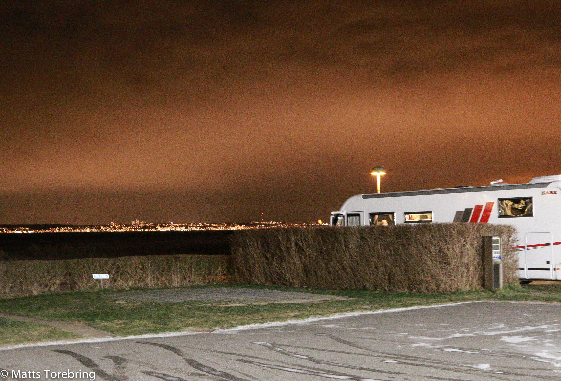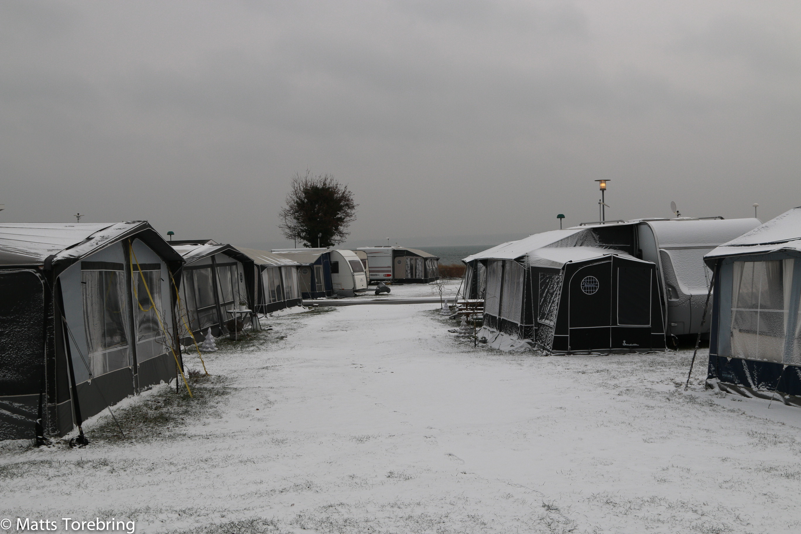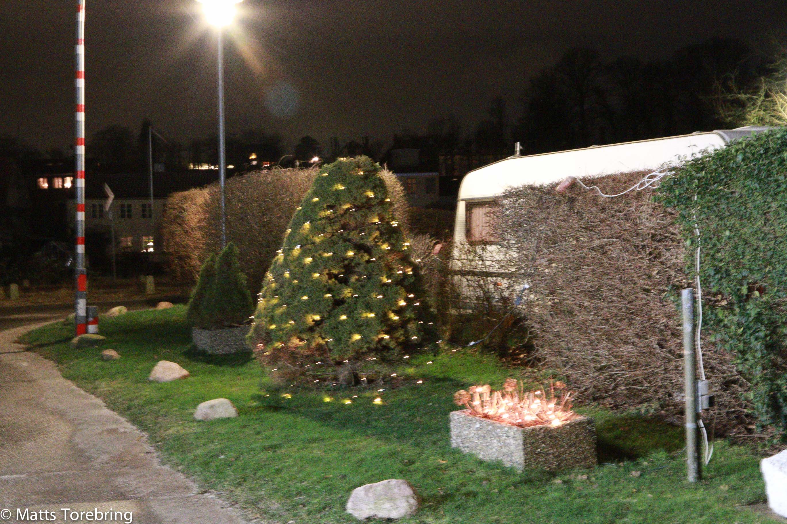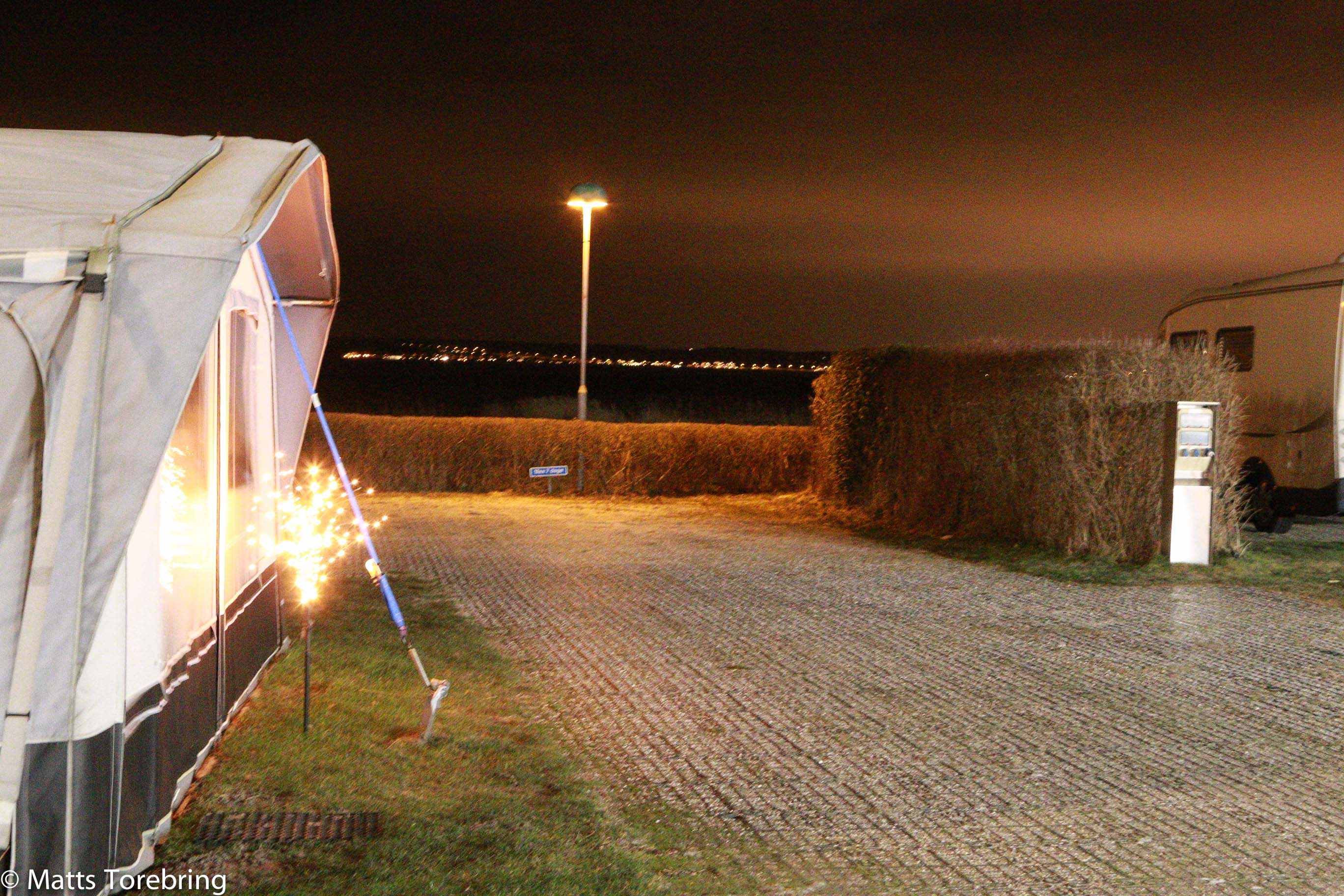 Torsdag kväll på campingen. De flesta vagnar han julljusen tända.