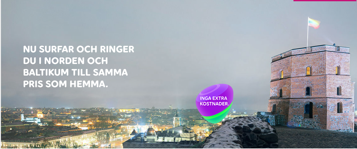 Detta gäller när du befinner dig i Norge, Finland, Danmark, Estland, Lettland eller Litauen (gäller ej i Island, Grönland eller Färöarna). Ingår automatiskt för alla kunder med mobilabonnemang och mobilt bredbandsabonnemang från Telia, helt utan extra kostnad och oavsett abonnemangsform.