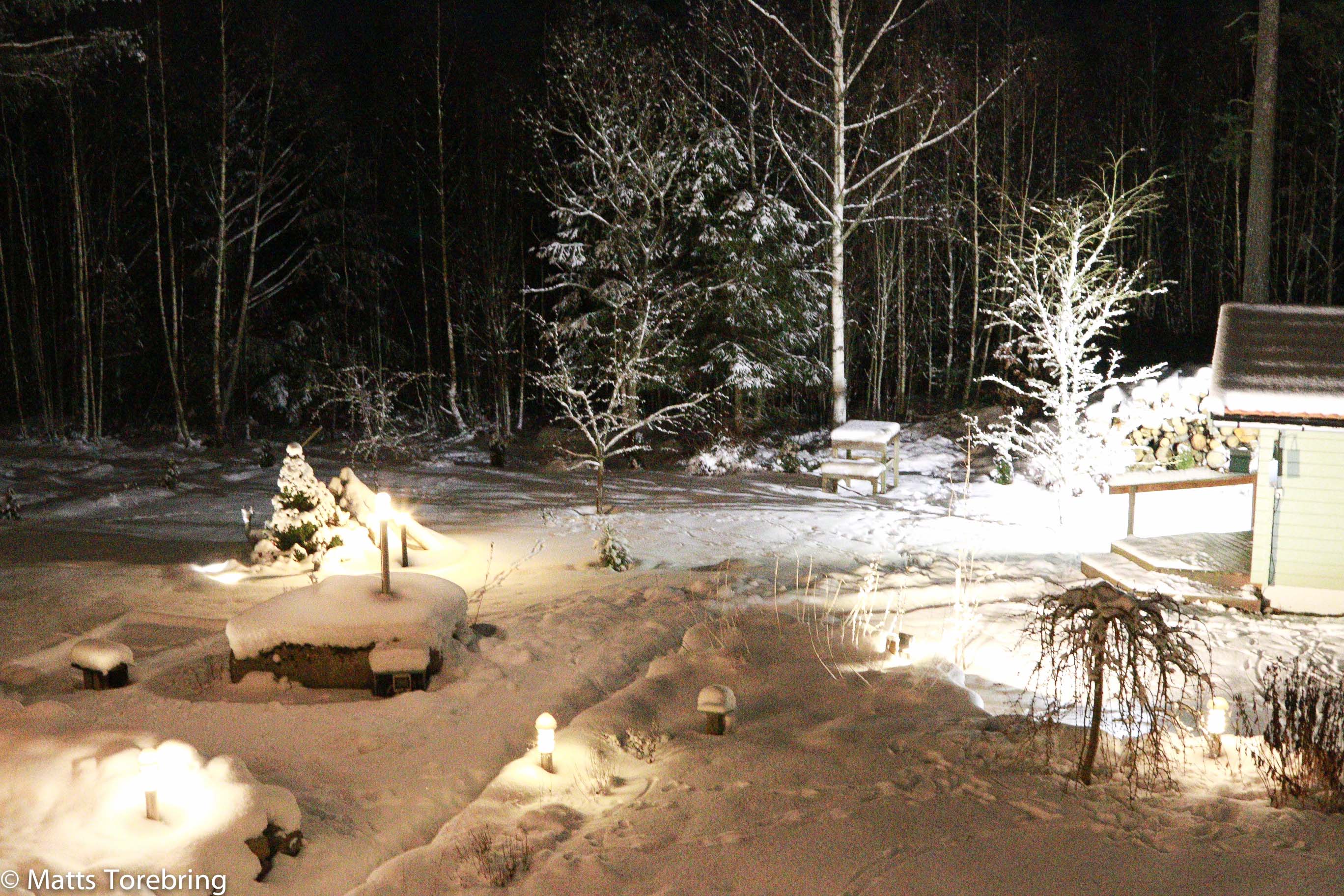 15,4 grader nu kl:19,30. Vist är det vackert med snön!