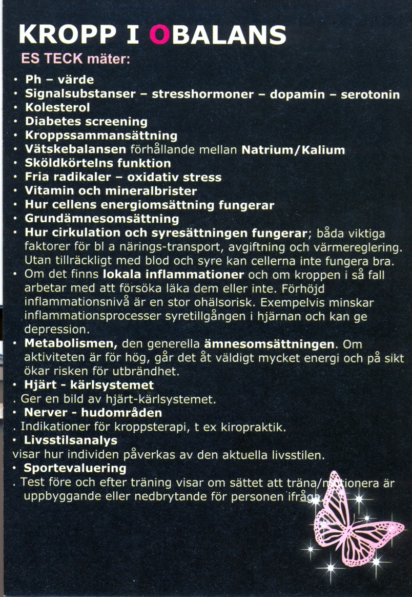 I dag har Birgitta & jag gjort något för oss väldigt nytt och annorlunda. En av våra anställda gick in i väggen, för ett och ett halvt år sedan. Han kom då i kontakt med företaget Kropp i Obalans AB i Tyresö. Överlycklig som han var över undersökningen, rådde han mig och Birgitta att boka tid. Det gjorde vi i början av januari. Företaget landar på olika platser i landet, för att ta emot kunder under några dagar. Denna veckan i Jönköping. Vi åkte dit med en blandning av tilltro och skepsis.