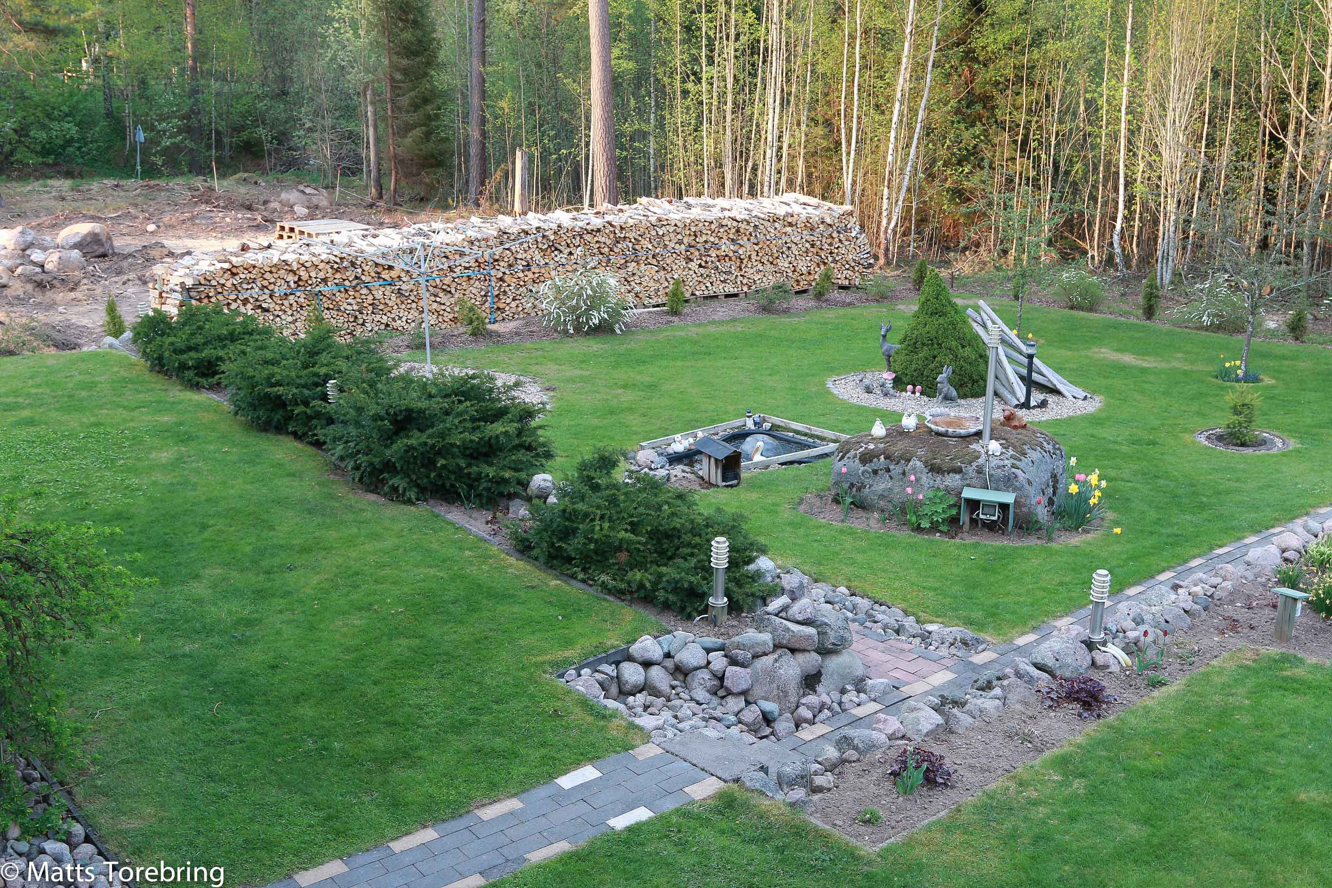 Sommarvärme får gärna stanna om, det ibland blir lite svalare och lite regn. Vad snyggt det ser ut med längan av meterved i trädgårdskanten.