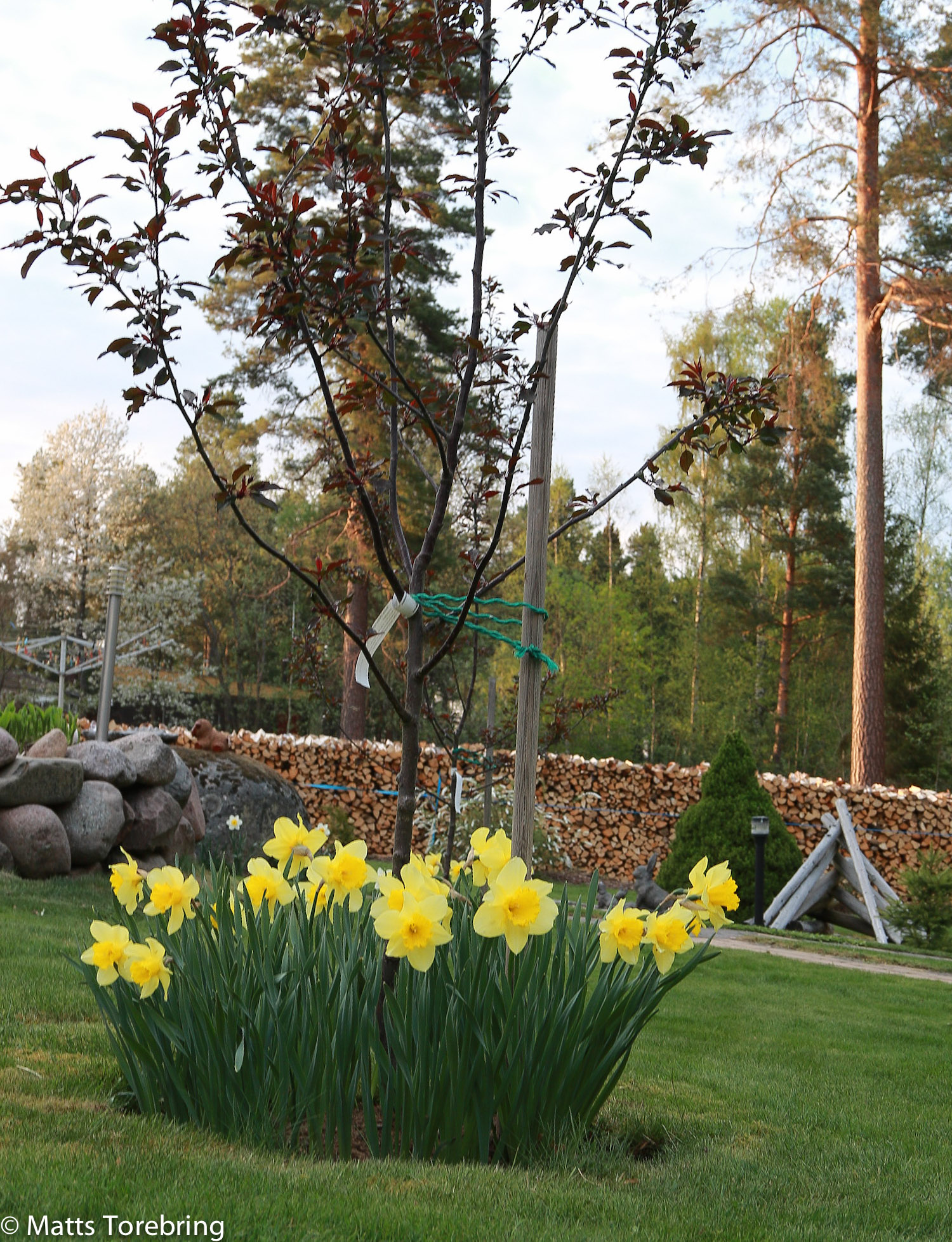 Förra året (tror jag det var) kom tulpanerna upp genom snö och is. Så mycket roligare att se dem i år. Med en kraftfull maskinpark, tog det bara tre dagar att få till denna stora vedtrave. Kram