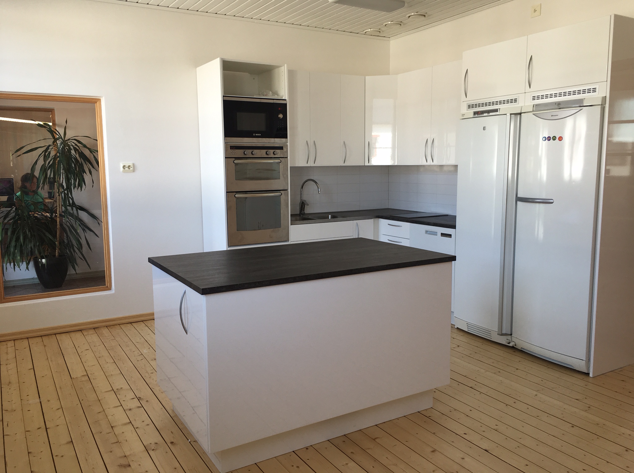 Det går inte att göra köket annorlunda , sa min gode vän och arkitekt Stig Johansson. Men efter en lång stunds funderande och mätande, sa han: ”Jo det går nog Matts”. Sedan hade jag fått tre goda rekommendationer om köksbyggare, Fredric Andersson Profilkök, Aneby. Så noggrann och så yrkeskunnig. Vilken kvalité det blev på snickerierna. Till och med plywood i vissa delar. Men så var de tunga också. Fredric ritade om köket lite han också.