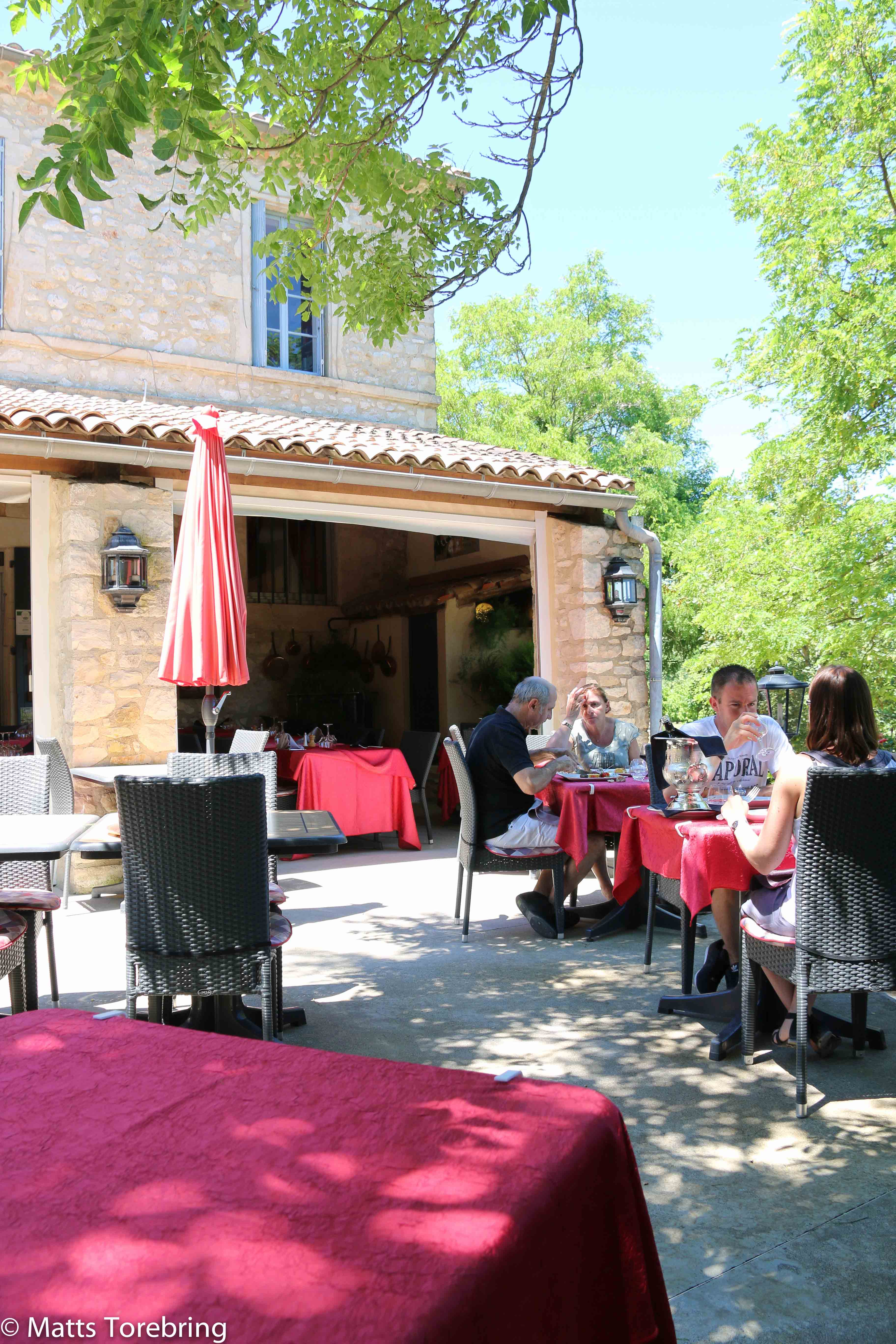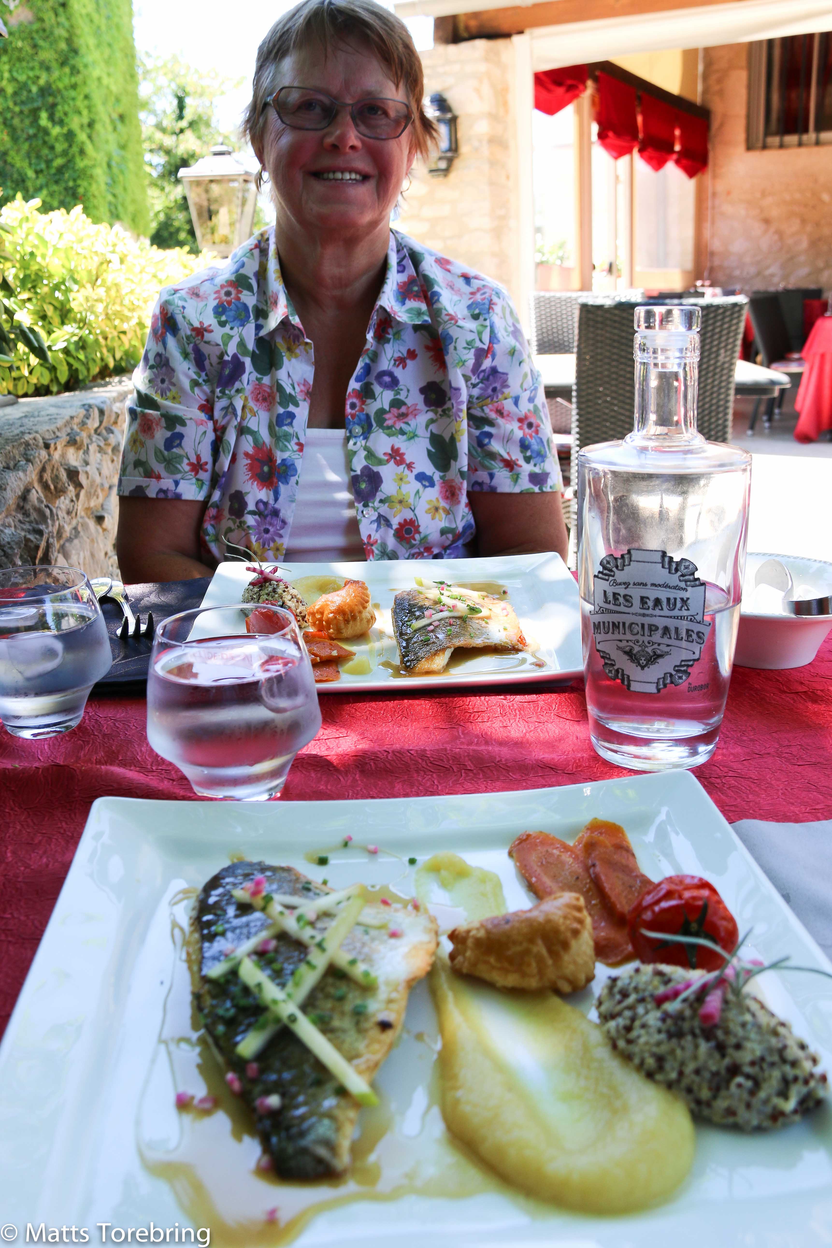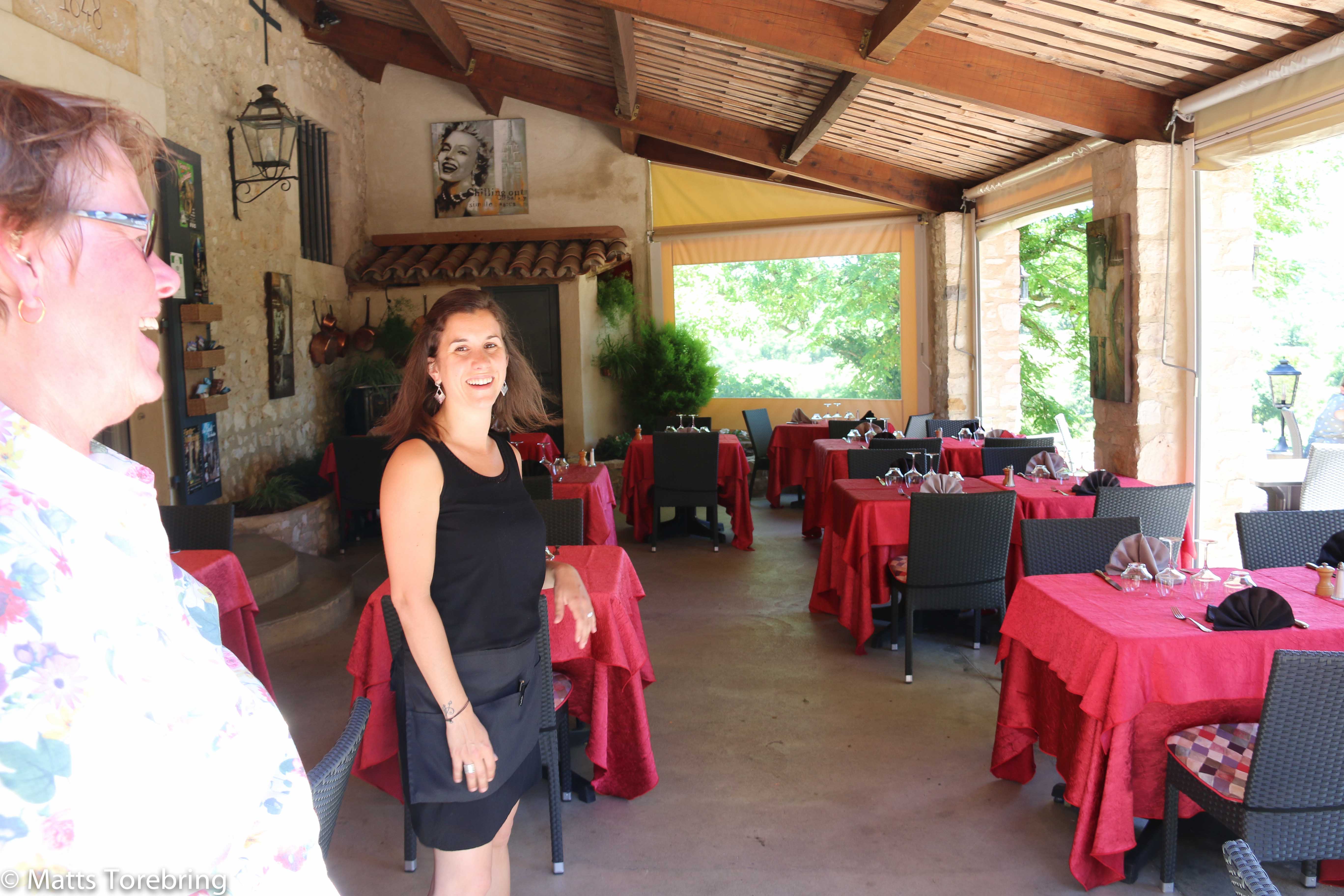 Jag var hundra meter före och letade. Kom, här finns en restaurang, ropade jag. Men vilken restaurang! La Petite Auberge. Vilken miljö! (Gå in på hemsidan och titta) http://www.lapetiteaubergelabastide.com. Här ligger både Gyllene Uttern i Gränna och Ullinge, Eksjö, i lä. Dessutom så vänligt mottagande. När vi lämnade våra bord, frågade hon om vi ville ha med oss ett reskit.