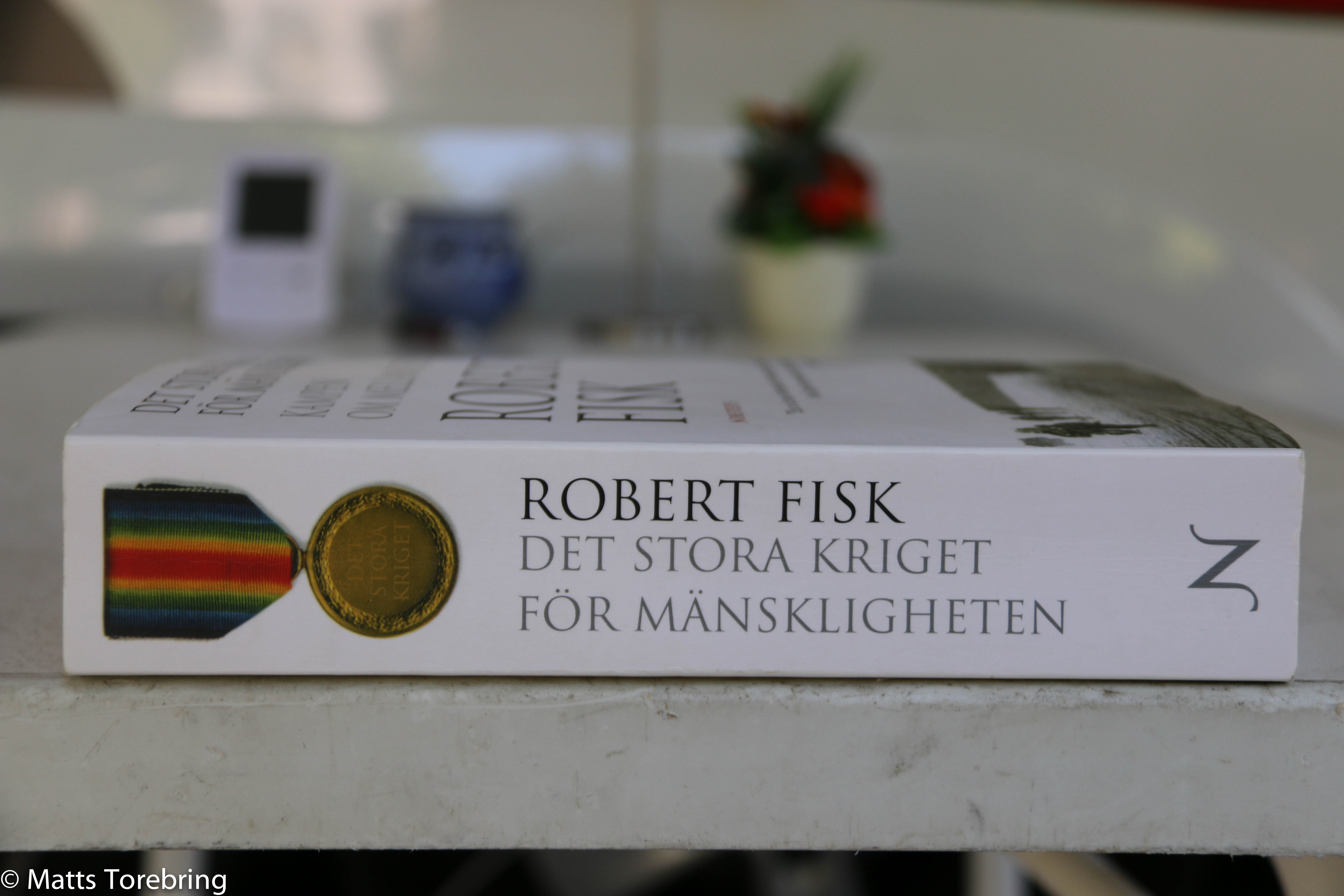 Detta är för mig det största bokprojekt, (jag berättat om det tidigare), som jag har gett mig i kast med. Så stora blad, så liten text, så många sidor, bara fem- sex kartor, inga bilder, men så superintressant. På ett ställe varnar författaren känsliga personer att läsa vidare. Skildringarna är så grymma, att de saknar motstycke! Det tog 16 år för författaren att skriva den självupplevda boken. Jag har en annan världsbild och syn på människan idag, efter att ha läst denna boken. Robert Fisk har varit krigsreporter i mer än 30 år.
