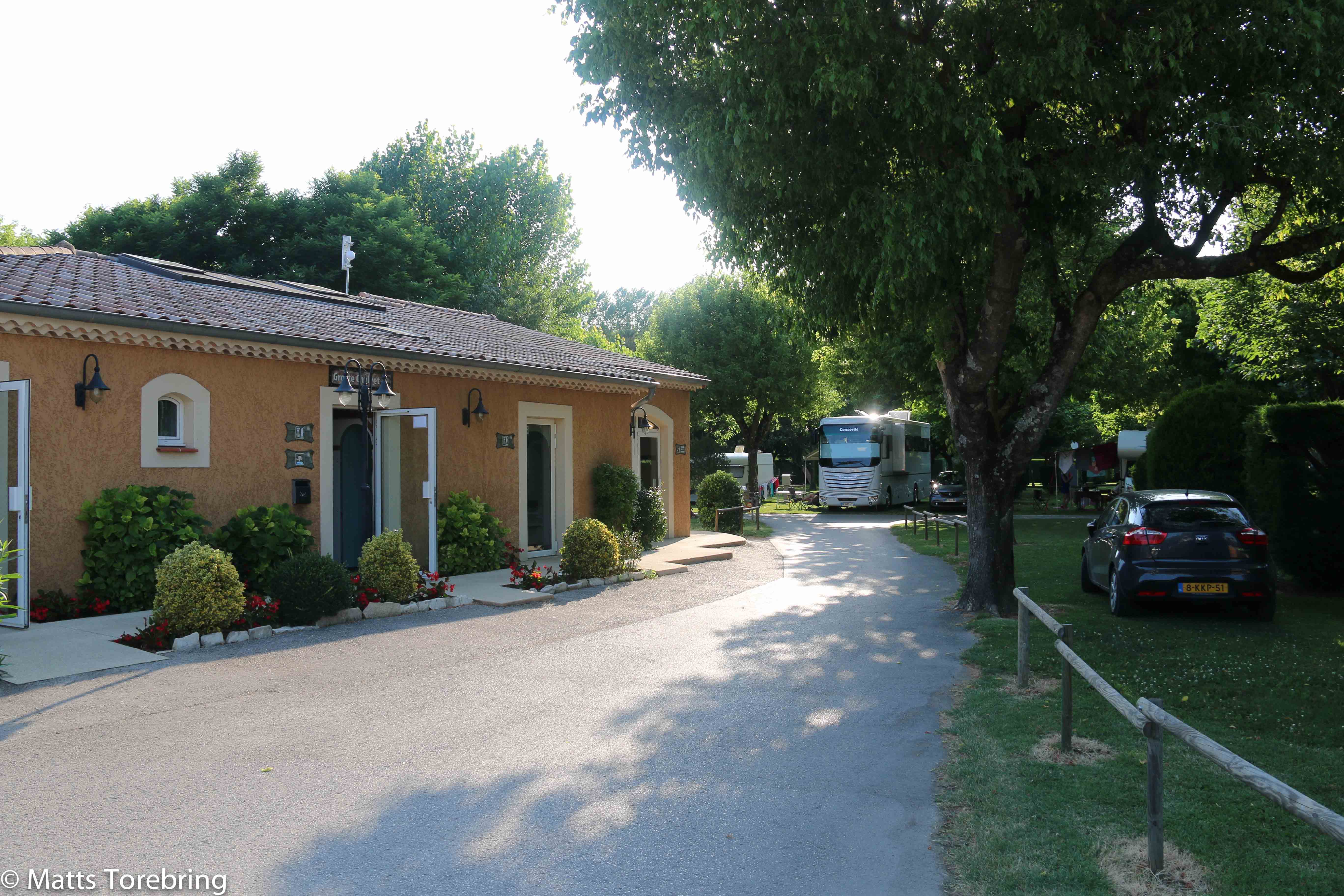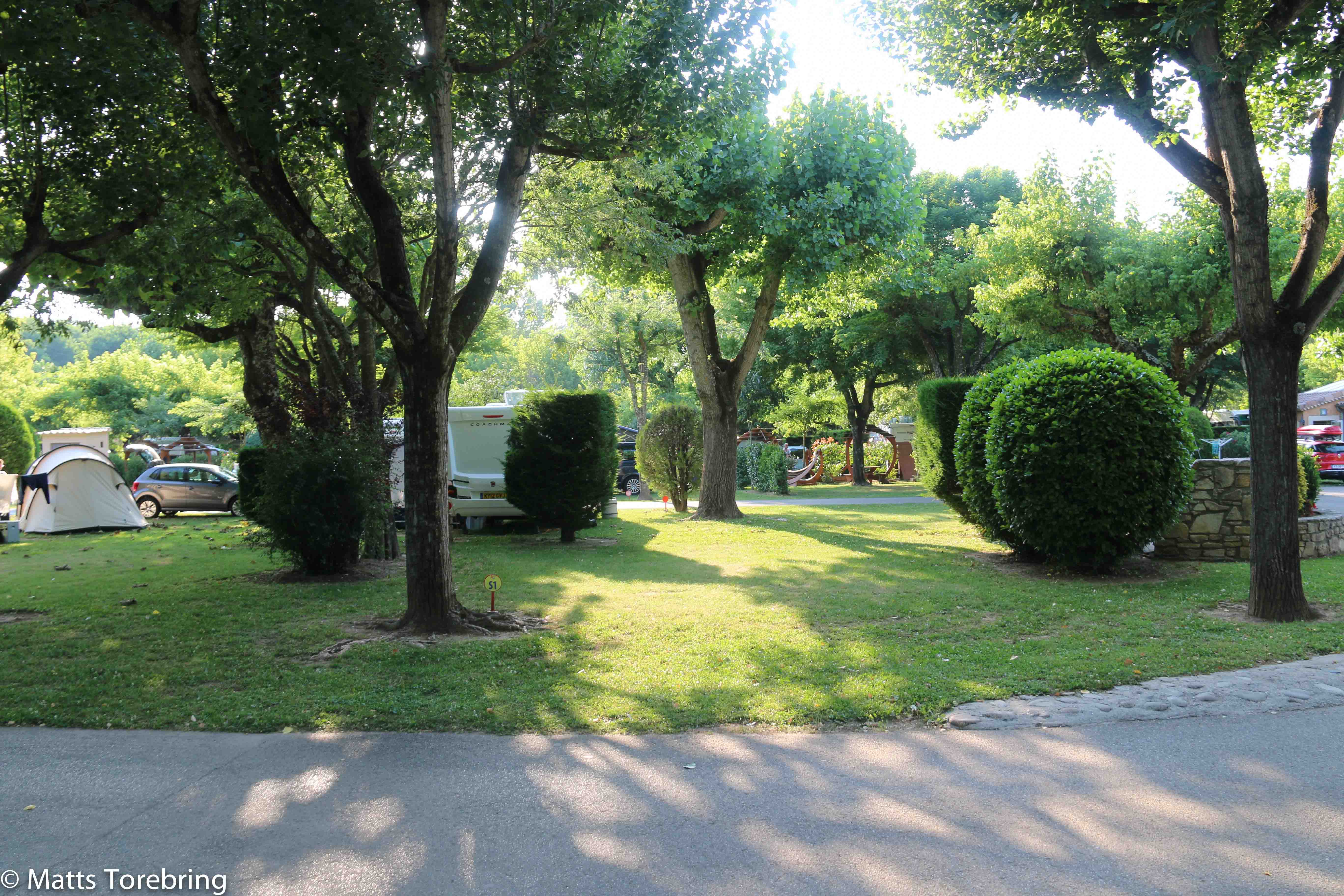 När vi hittade denna mönstercamping (Fem i topp i Europa), Camping Natur Parc L´Ardéchois, skickade jag bara ett mejl, önskade plats, talade om att vi kommer på onsdag och fick ett välkomnande svar.   När vi kom hit fick vi den bästa tänkbara plats. Jag har försökt göra samma sak på andra platser, men tvärstopp. Jag har varit tvungen att boka plats och det gillar inte jag. Detta var föredömligt och jag lever på det i två veckor!