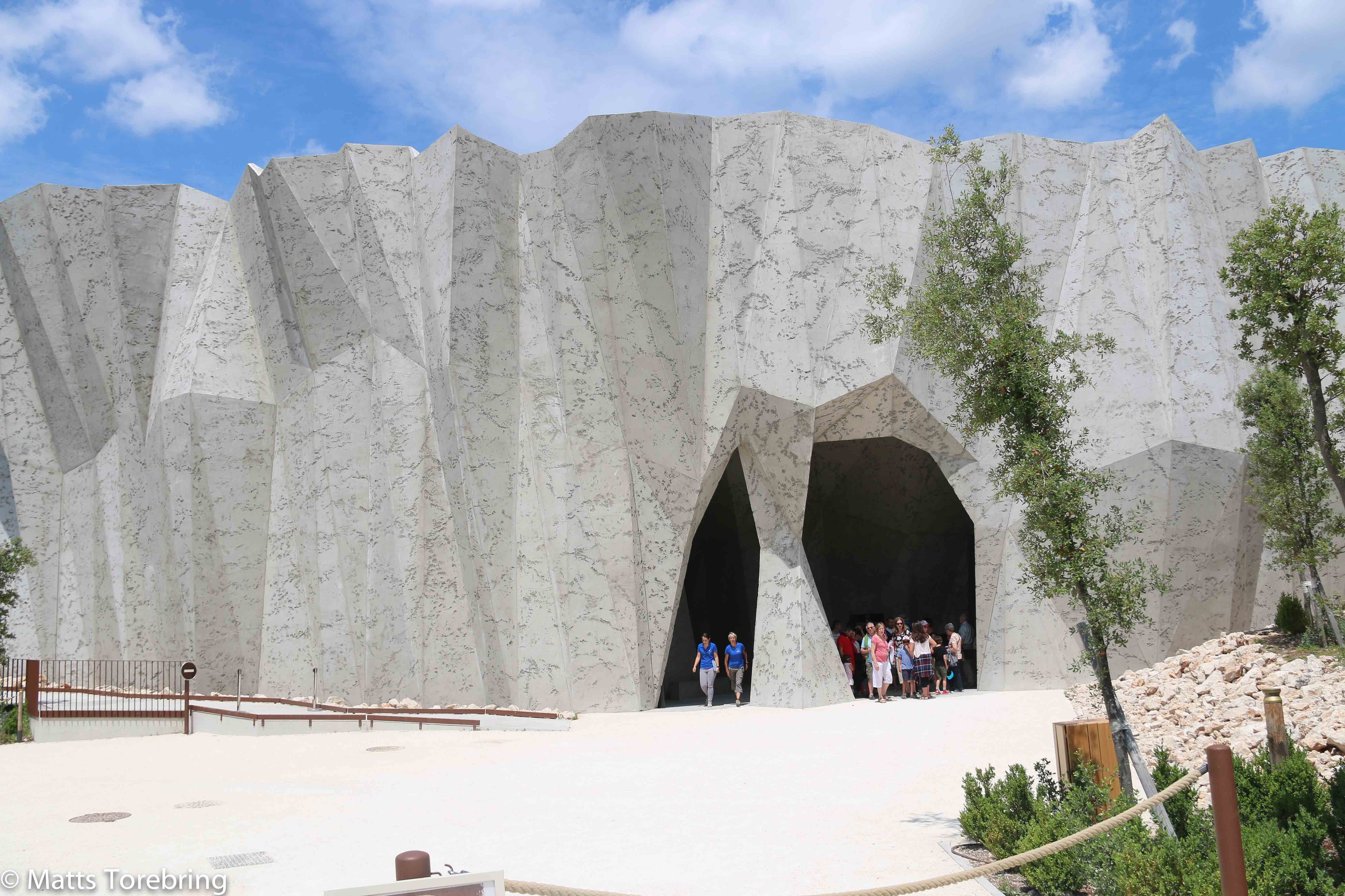 När vi söker campingar ser vi mest till kvalité, standard och platsens belägenhet. När vi hittade campingen vi bor på nu, (topp fem i Europa) hade vi ingen aning om, att vi nästan kommit till historiens vagga. Vi såg bara under ett kort ögonblick på vägen hit, en märkligt utformad stor byggnad belägen högt upp i bergen, mitt inne i ödemarken. Sedan började Google arbeta och vi måste ut och cykla! Häng med upp i bergen, 36000 år tillbaka i tiden!