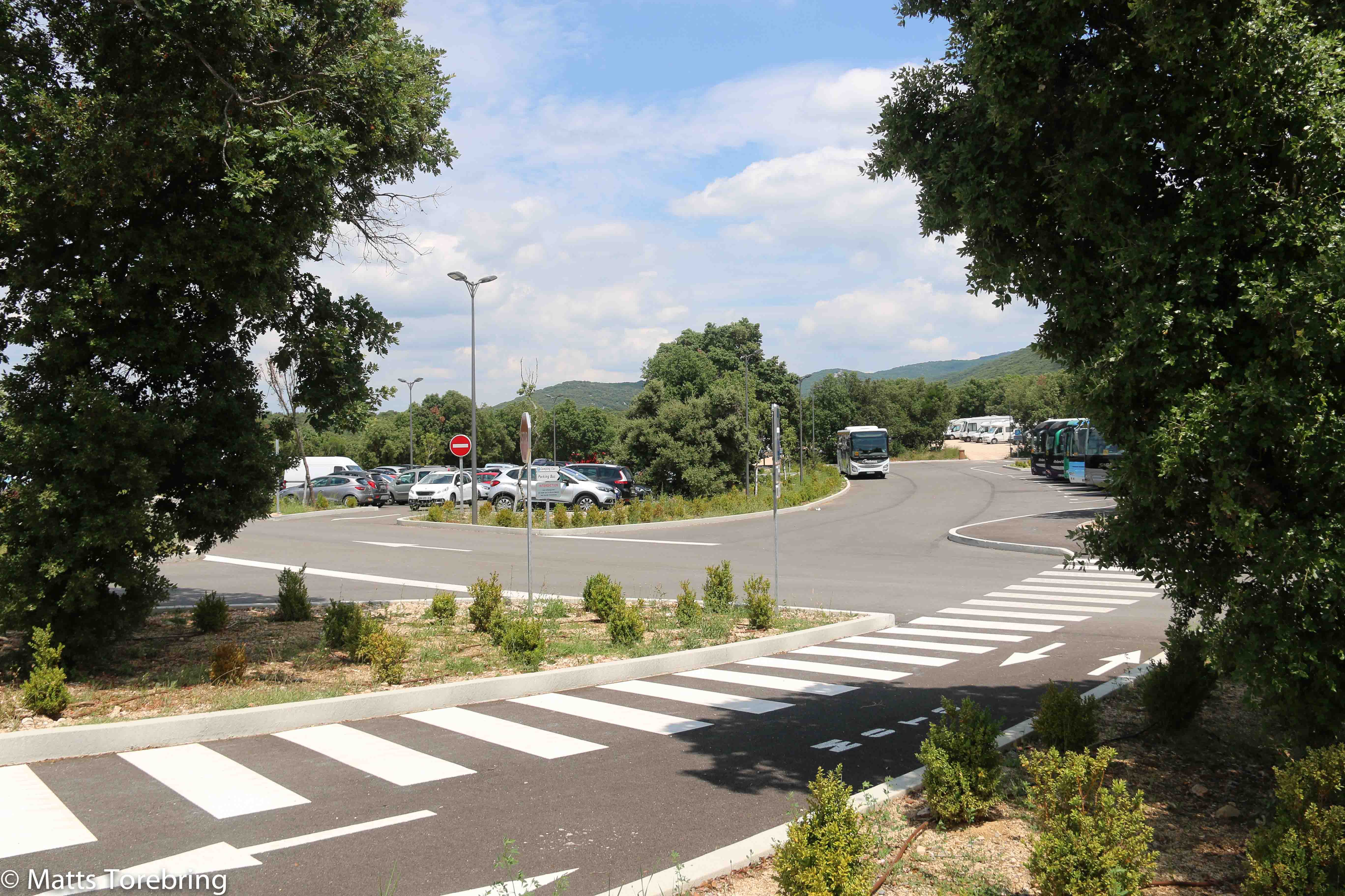 Vi har kommit fram till Grotte Caverne. Parkeringen är gratis. Jag tror även gratis nattparkering för husbilar.