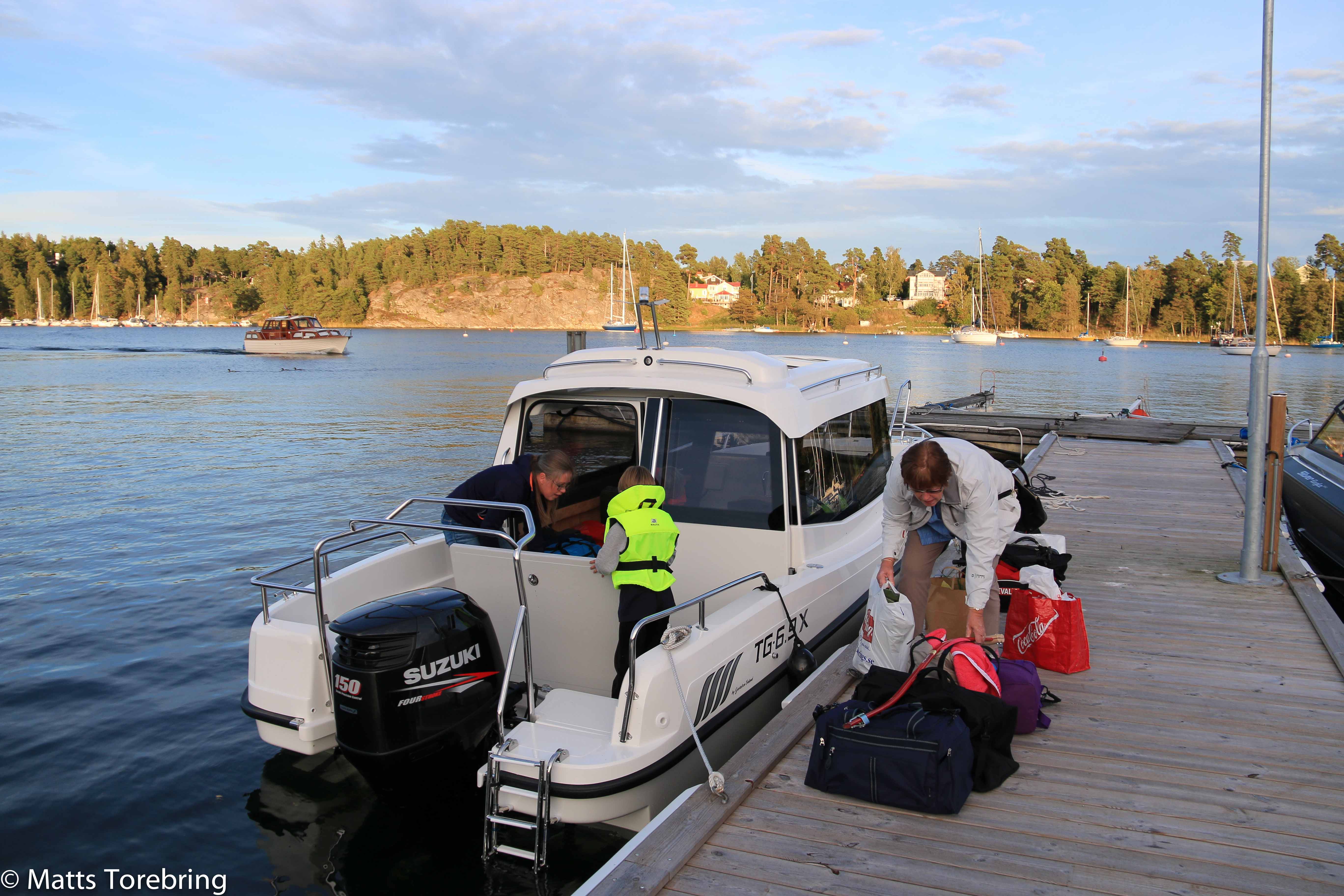 Lastning i hamnen i Dalarö i familjens helt nya och för dagen nyinköpta båt.