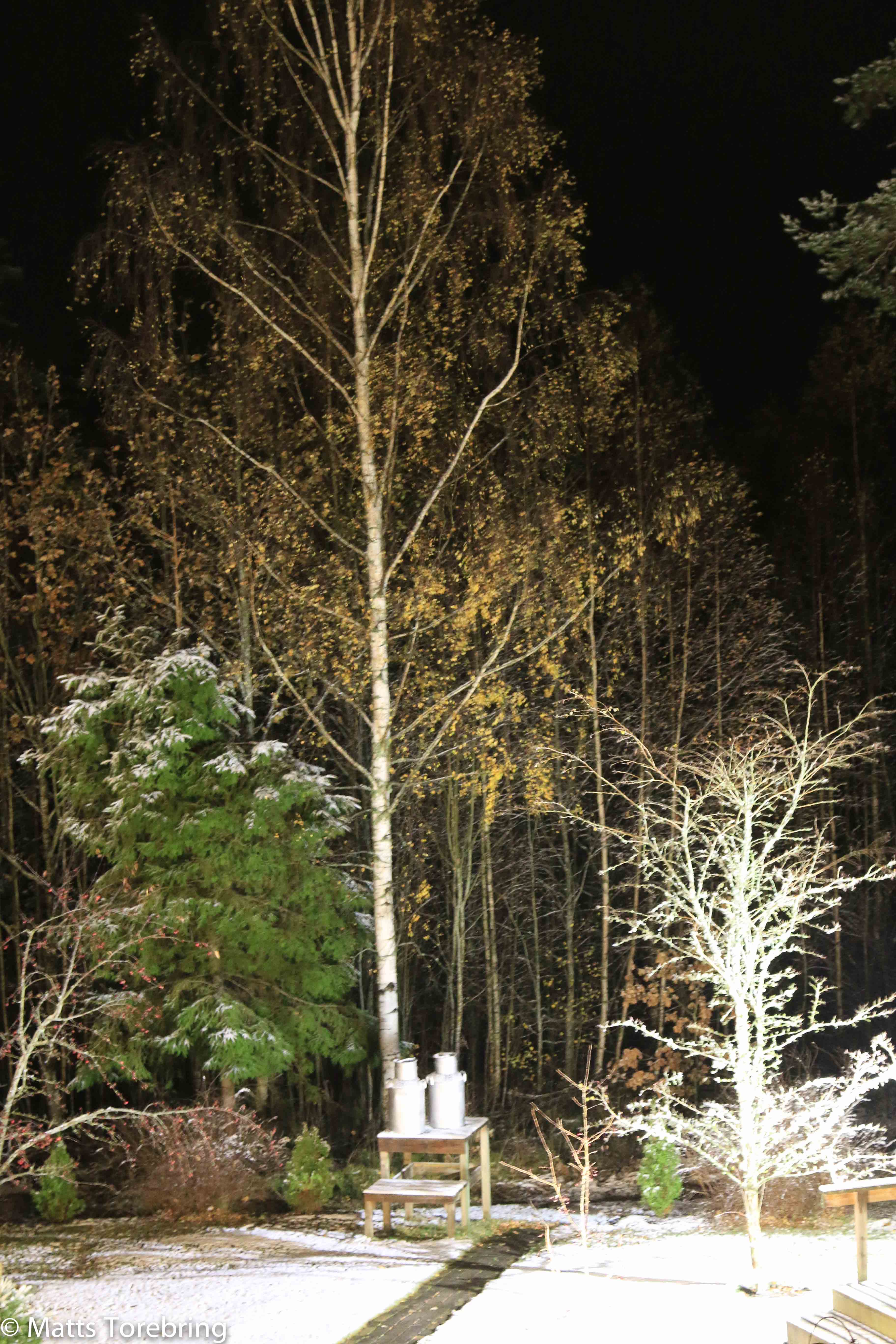 Jag har över femtio- talet ljuspunkter ute i vår trädgård samt på huset. Jag vill inte ha mörkt omkring mig. Sedan har jag massor av 220 v uttag utplacerade.