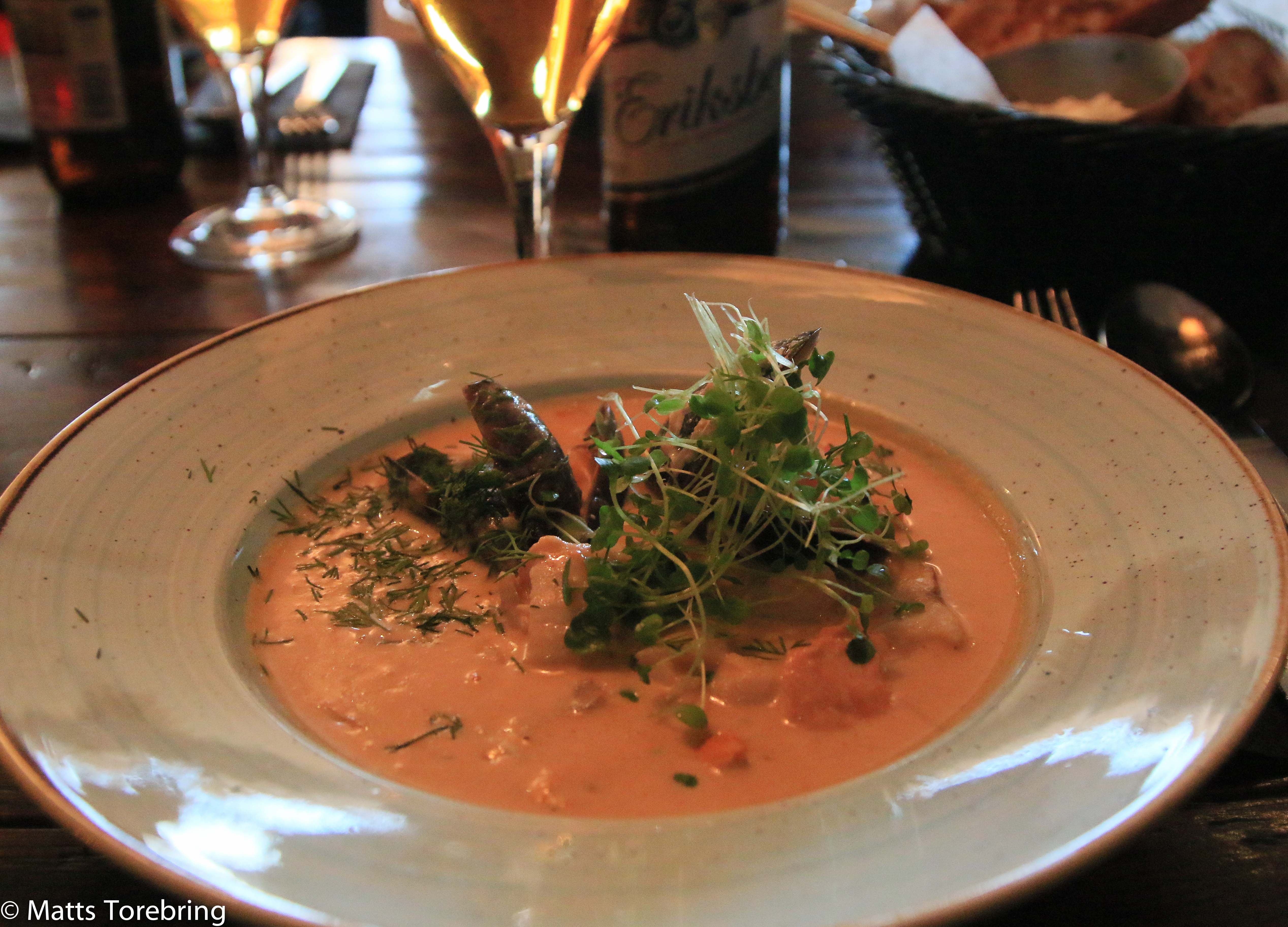 Vi måste ju hålla oss till Fisk & Skaldjurs rätter, när vi är i en sådan skaldjursmetropol som Strömstad. Till detta fick vi ett fantastiskt gott vitlöksbröd och aioli.