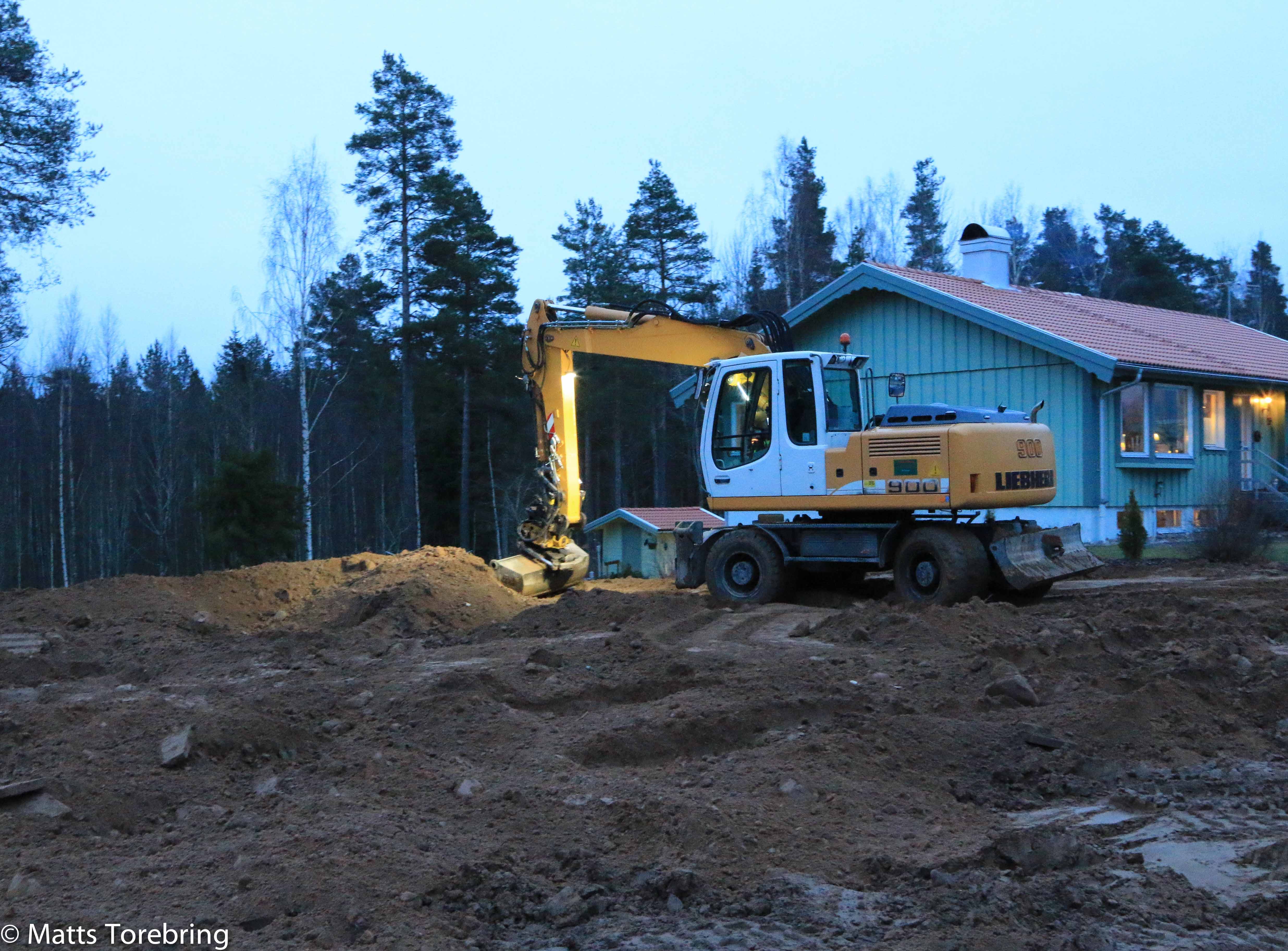 Jag blev nästan lite förvånad igår kväll. Helt plötsligt hörde jag en maskin, arbeta utanför vårt hus. Jo minsann, där satt Johan och körde grävmaskinen. Jag har varit på kurs hela dagen, sa Johan, jag måste få gräva ned en massa trams jag lyssnat till, sa han. På någon timma hade han nästan gjort klart, det övre etaget  på min nya tomt.