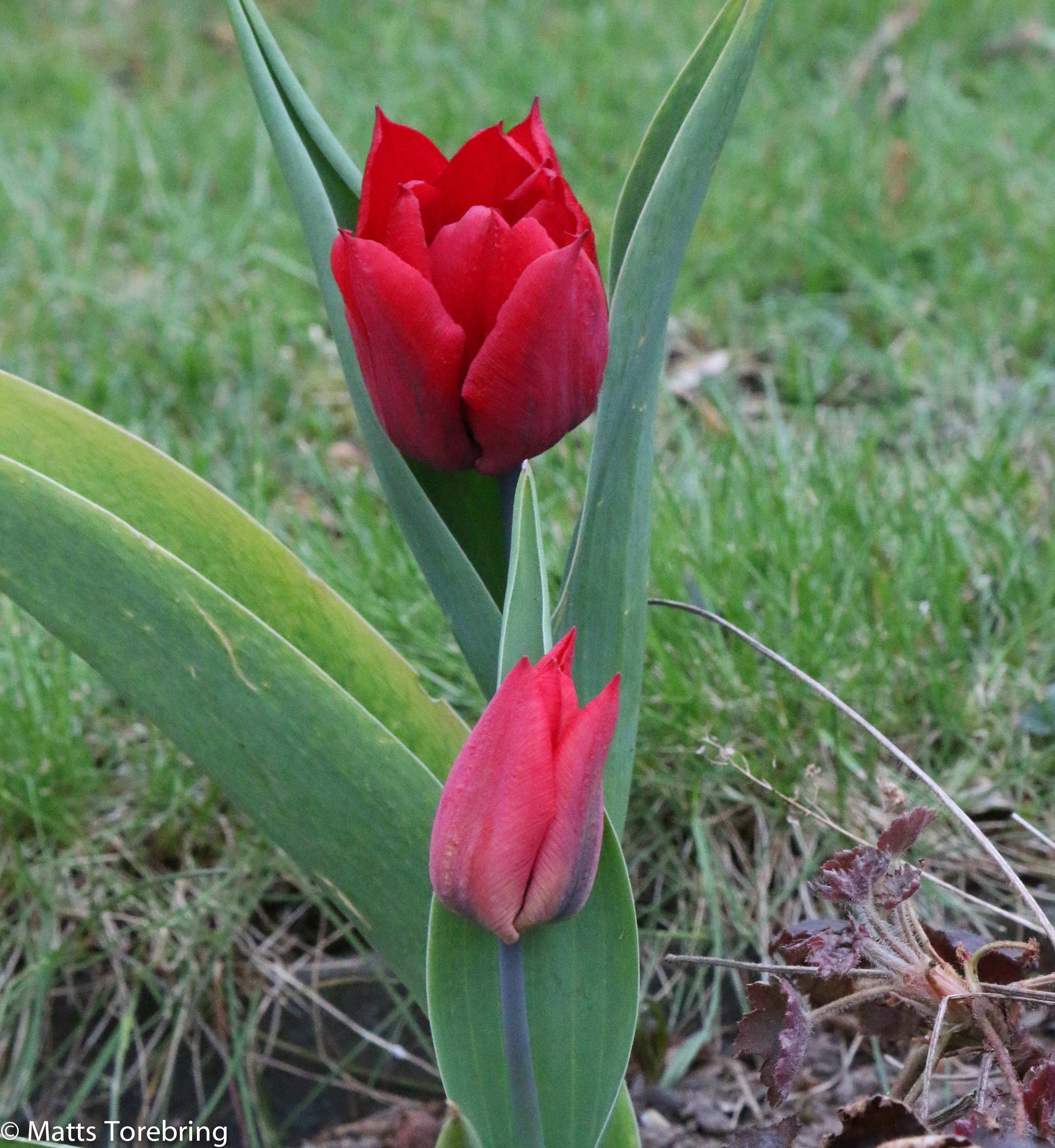 Åh så fina kraftfulla tulpaner, våra tappar kraft för varje säsong! Förra året blåste flera sönder tyvärr, men grönskan var samma här i fjol ser jag i mitt bildarkiv! Tror varje år att 1 Maj inte ska bli grön men jodå i vår växtzon 🙂