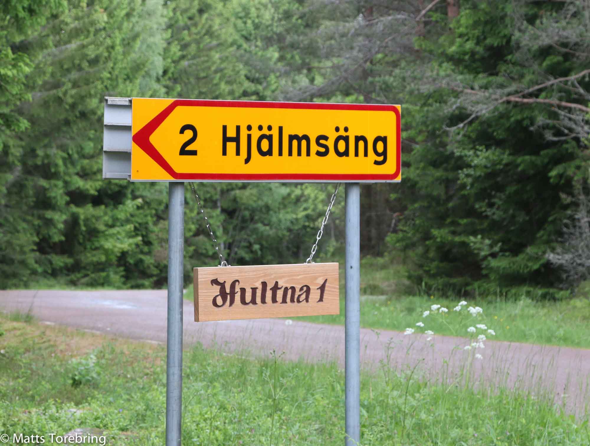 Vi passerar gård efter gård. Både Birgitta och jag känner igen namnen, på en hel massa gårdar. Dessa gårdar talade våra föräldrar alltid om. Hjälmsäng var ett av många namn.
