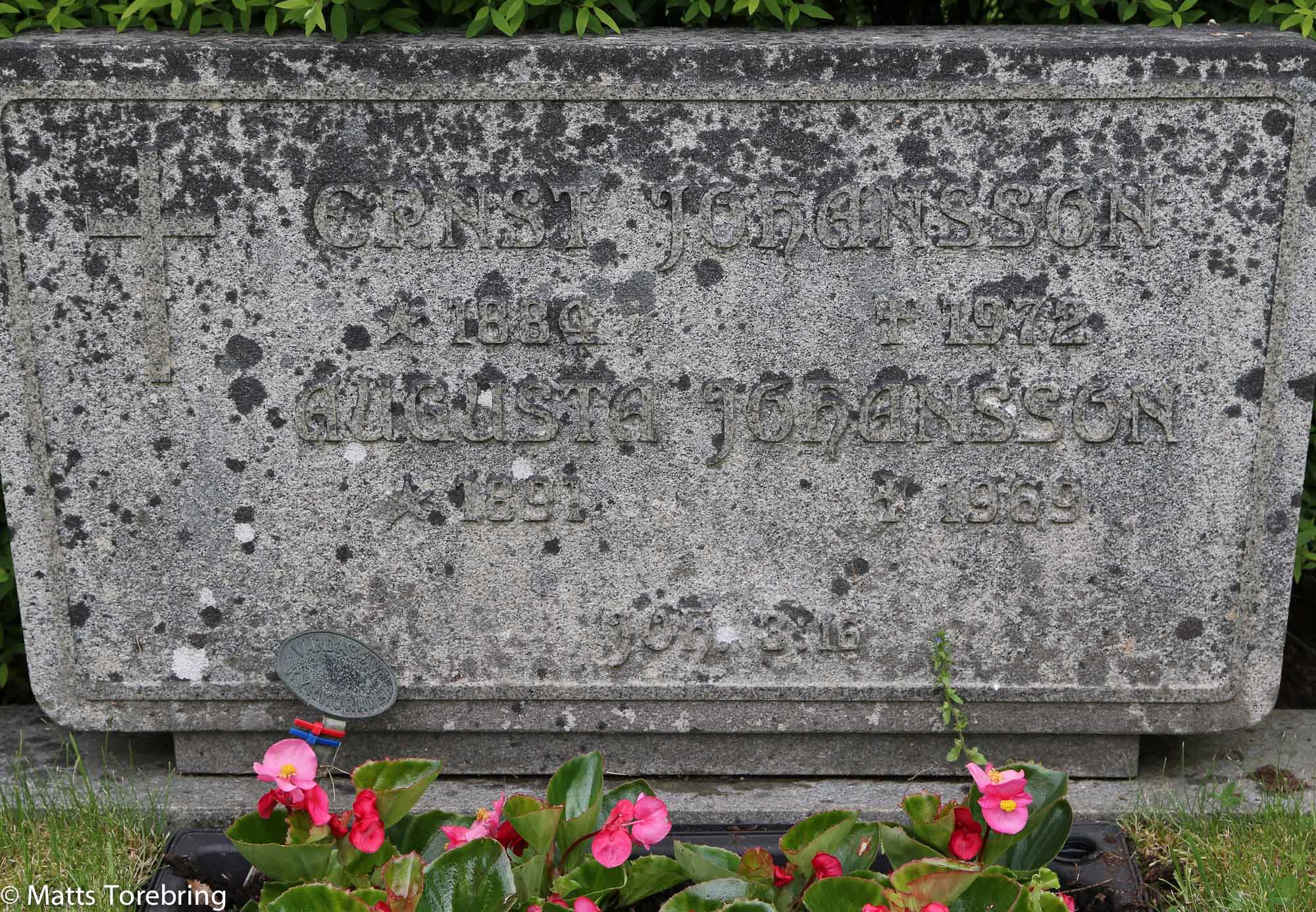 Jag vet att Ernst & Augusta Johansson var väldigt snälla, men säkert strängare än strängt. Jag minns att farmor Augusta sa till mig: ”Du har väl ingen flicka bara”? Jag minns att vi satt och fikade i deras finrum.