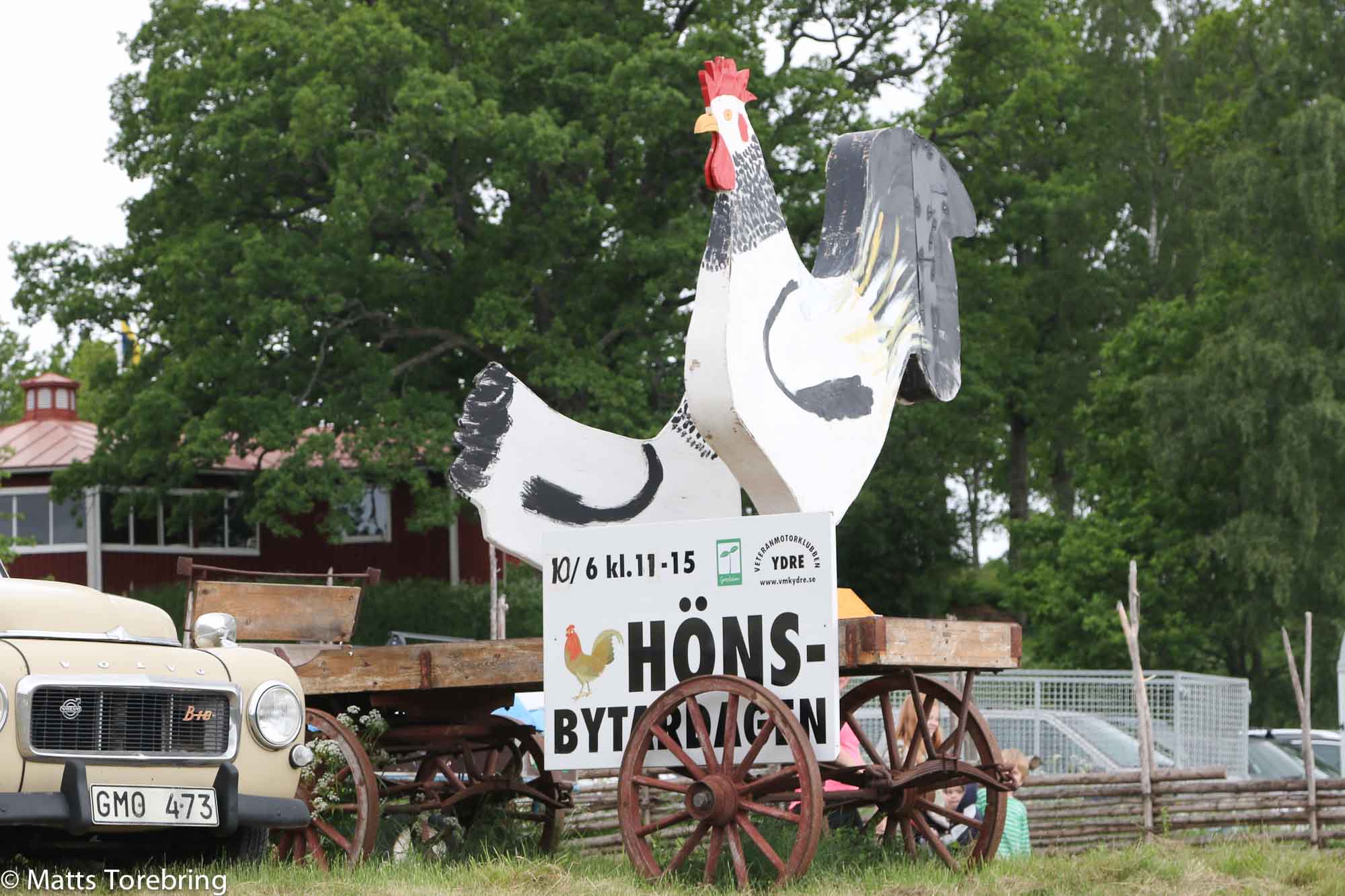 Vi körde först förbi. Sedan körde vi tillbaka. Hela Ydre kommuns invånare var ju här, på Veteranmotorklubbens ”Hönsbytardag”. Jag läser i Smålands Tidningen idag, att det kom bara 3000 personer mot normalt 4000.