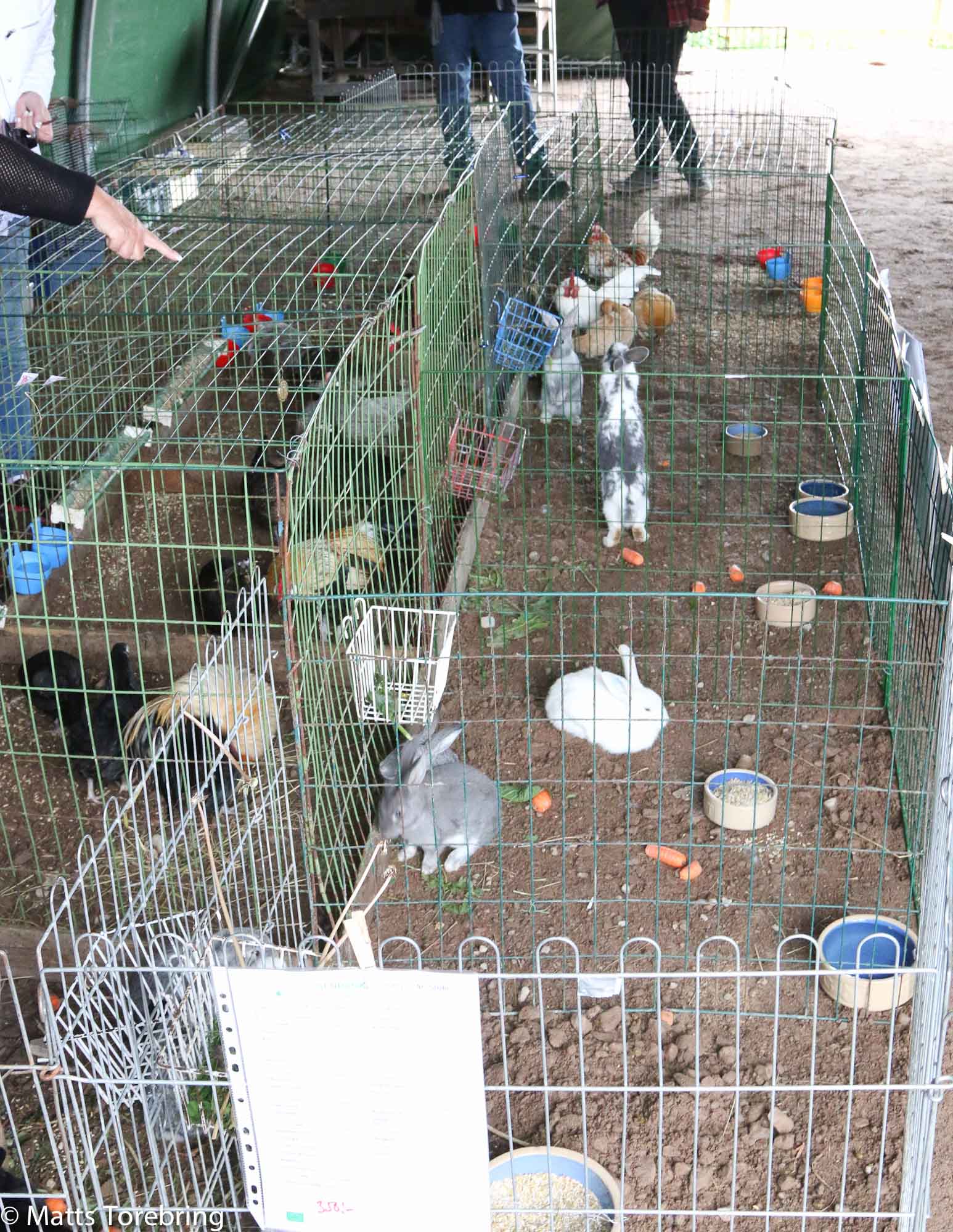 Tupparna gol i burarna och hönorna vaktade sina kycklingar i en annan bur.
