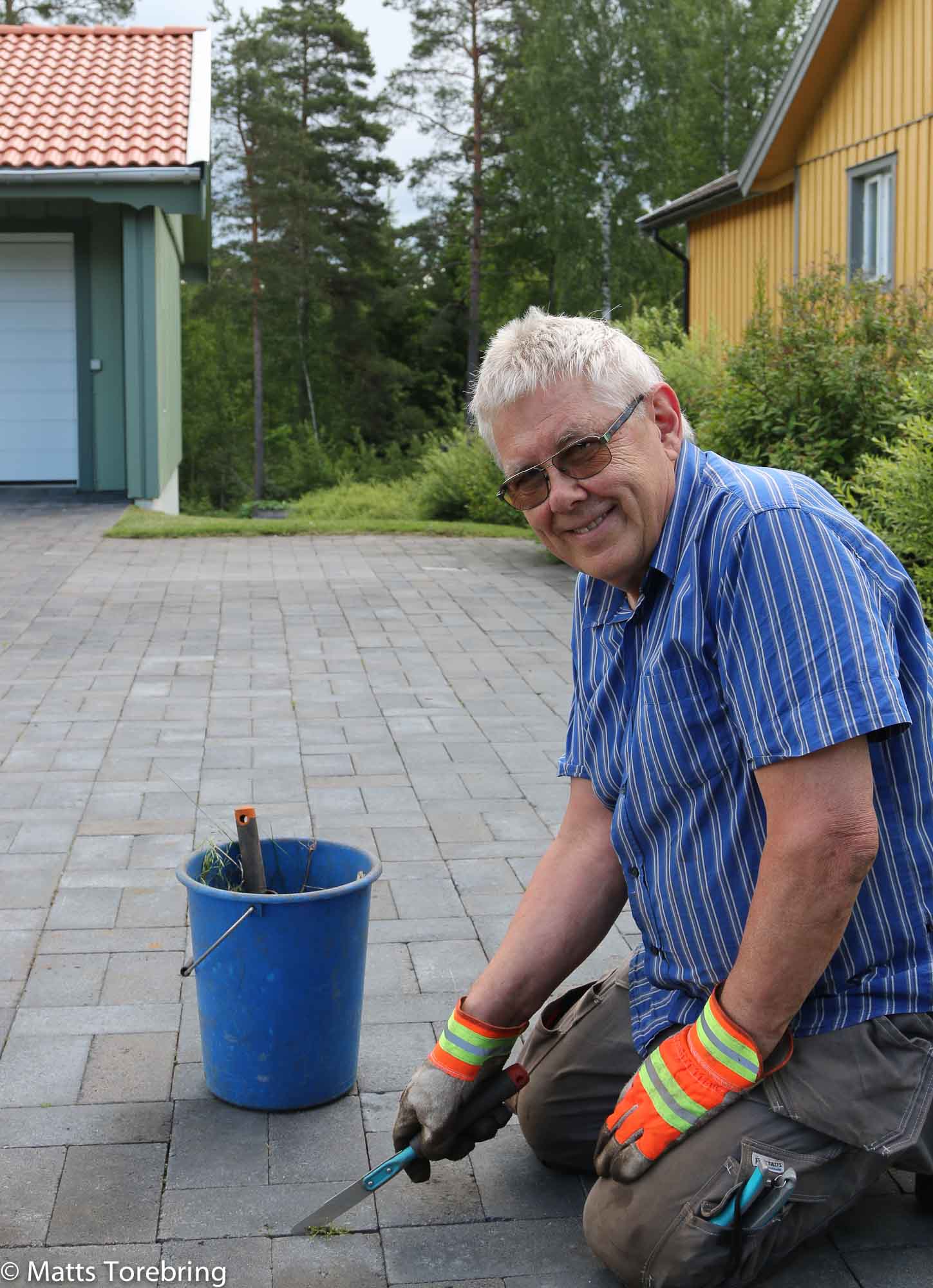 Efter en skön nattsömn, en kopp kaffe och läst tidningen, var jag ute redan vid sju- tiden. Kanske vaknar grannarna av min grästrimmer, jag vet inte. Ser jag ett ogrässtrå när jag hämtar tidningen, drar jag upp det. Det gör att när jag går igenom hela trädgården, är det inte mycket att rensa. Efter att detta lilla ogräsfrö var uppe, tror jag inte att det går att hitta ett till. Det måste vara fint, när ”King of the road” kommer hem nästa vecka.