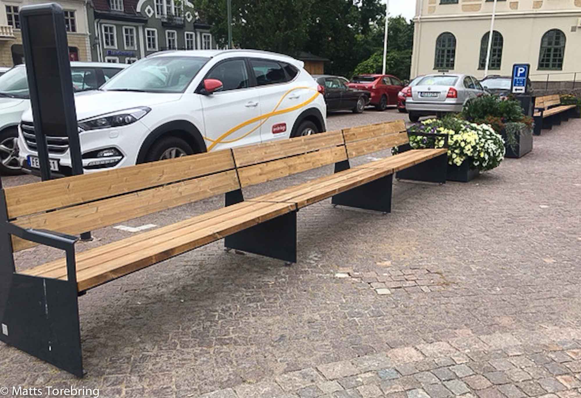 På torget i Eksjö stod tidigare, en extremt ful Café- Glassvagn. Hur den fått tillstånd att stå där, har jag aldrig förstått. Anrika Lennarts Konditori, som har öppet alla dagar i veckan, finns i ena hörnet av torget. Några meter till nedåt Norra Storgatan, finns dessutom Thimons Konditori. Nu har torget rustats upp, med nya soffor och planteringar. Vad snyggt det blev, trots att det regnade idag.