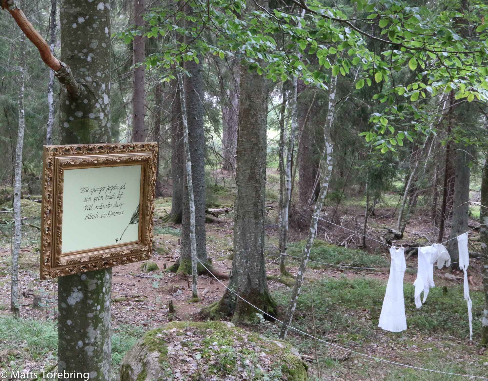 Älvornas kläder hänger på tork. (Klicka upp för att läsa texten på tavlan)