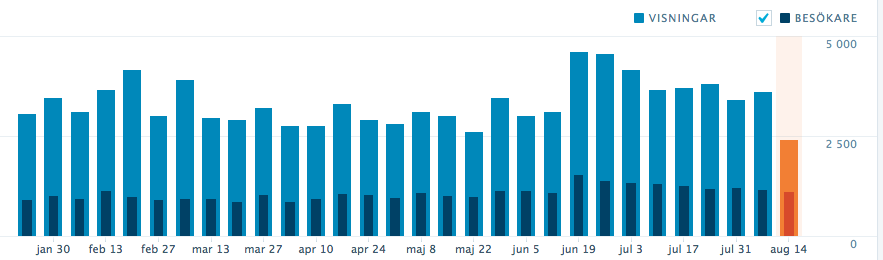 Jag är ändå ganska stolt över, att jag har haft 485 sidvisningar, av min blogg varje dag, året runt, de sista två åren och med en mindre ökning i år.