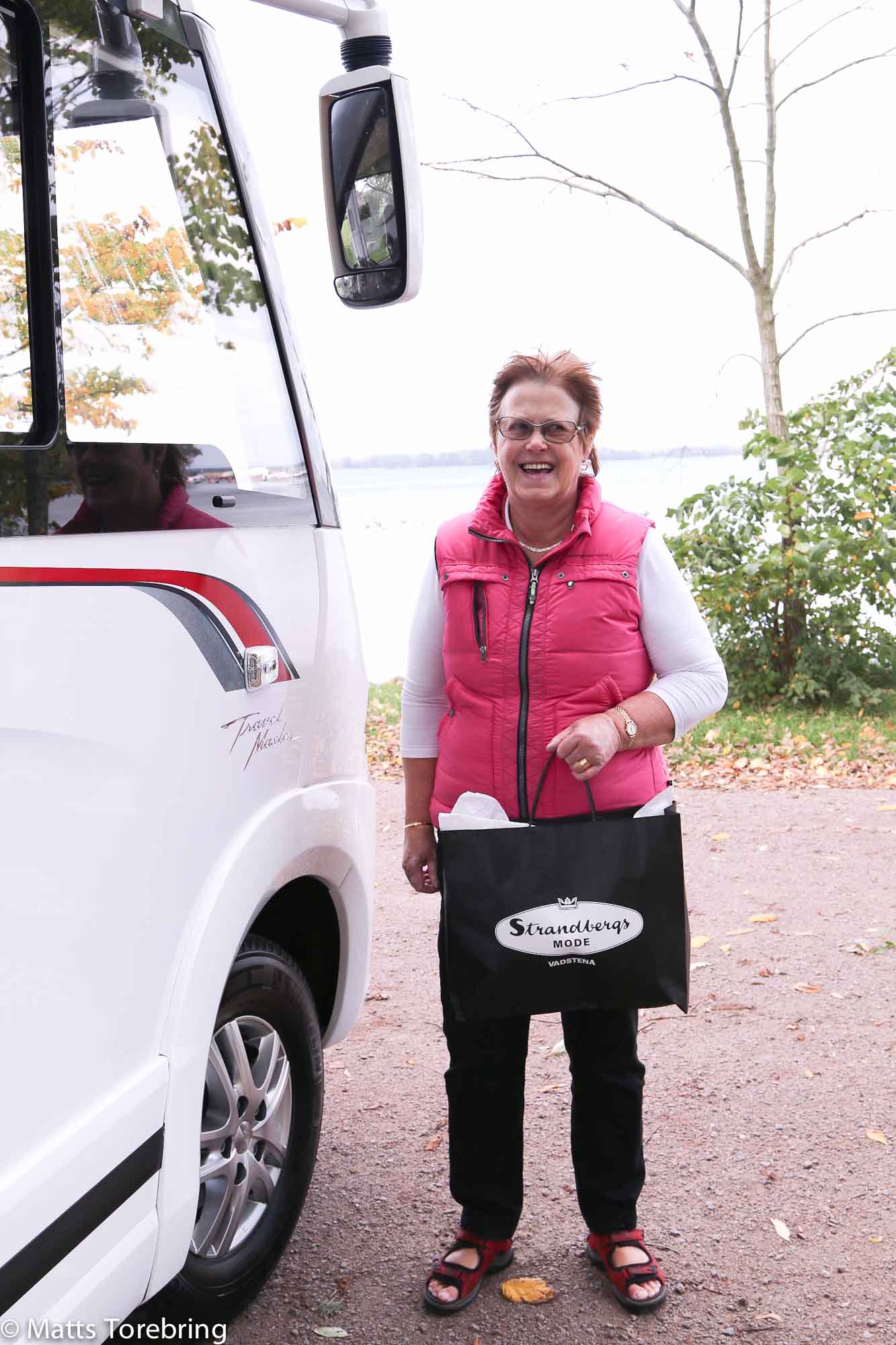 Döm om vår förvåning, på gågatan i Vadstena, finns fyra modebutiker. Vi gick först in i en butik, men gick ut direkt. Nästa butik blev Strandbergs Mode, i hela 120 år, har den funnits i Vadstena, berättade damen för oss. Men vilken butik! Hon visade en signerad bok om kungafamiljen, där familjens fotograf åker från Stockholm till Vadstena, när hon behöver klä upp sig för fest.