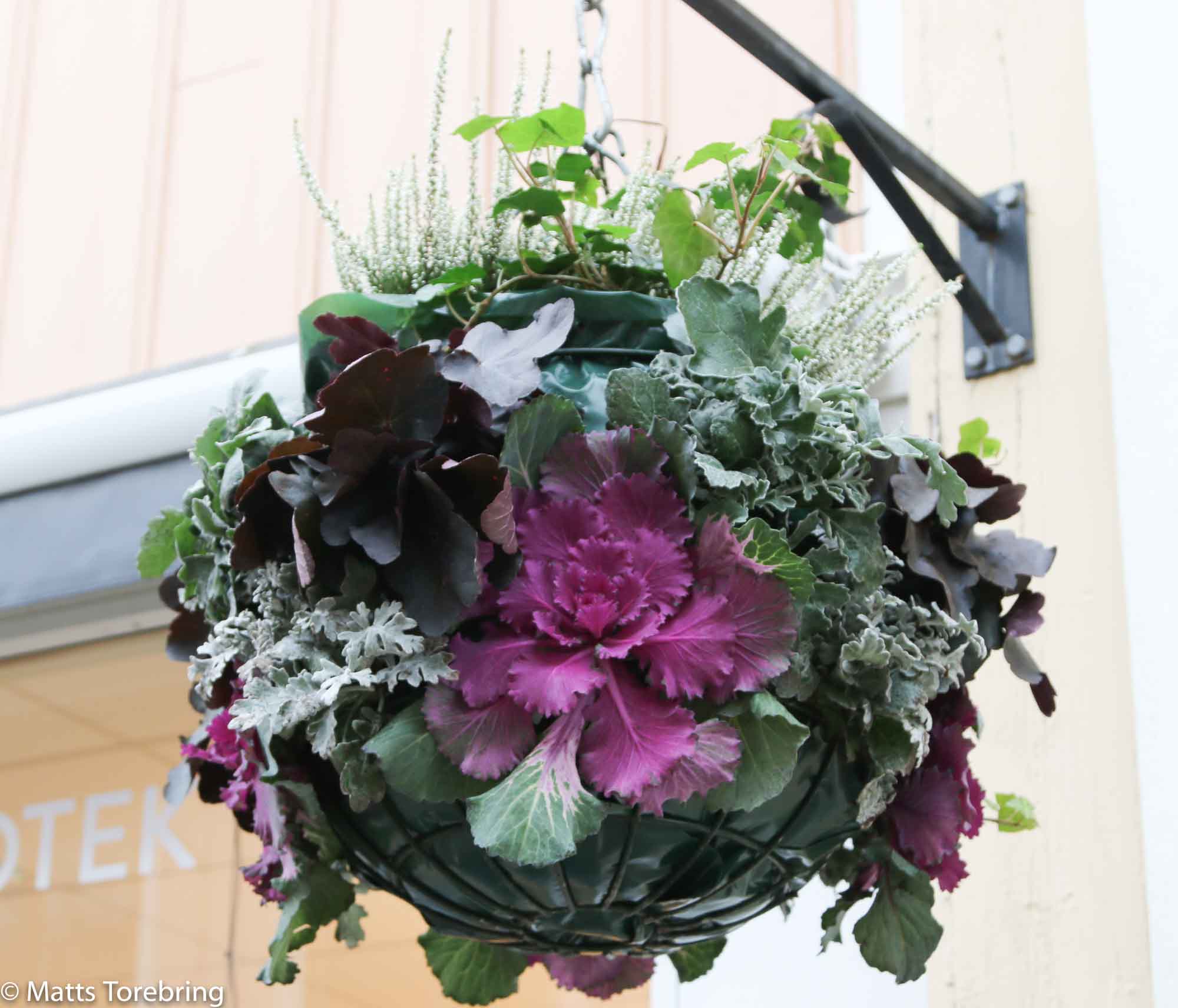 Dessa vackra blomamplar hängde på väggen utanför Apoteket på Norra Storgatan.