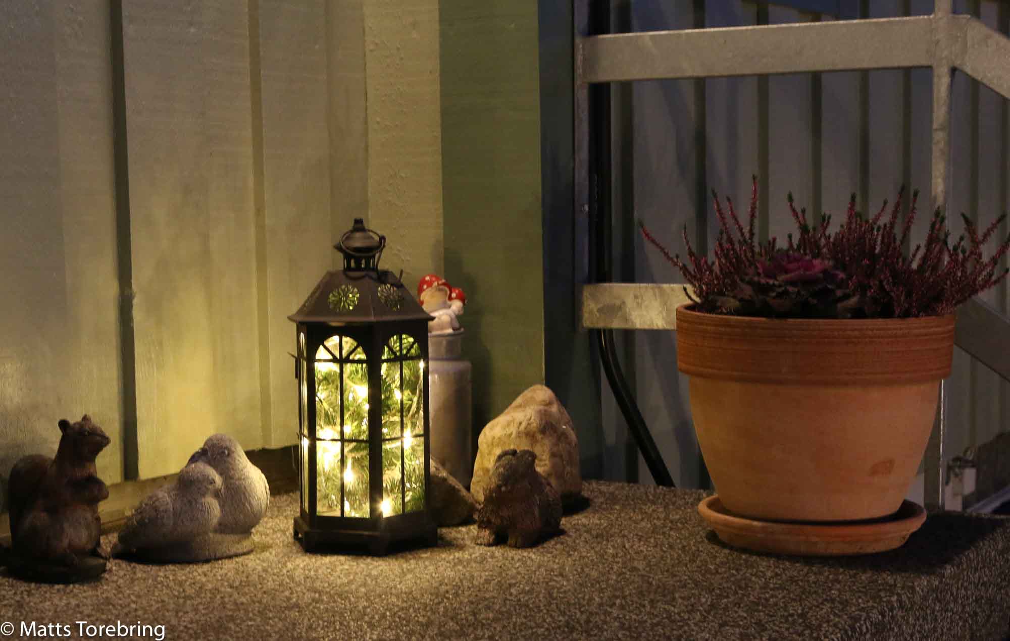 En ljuslykta på trappan ute.