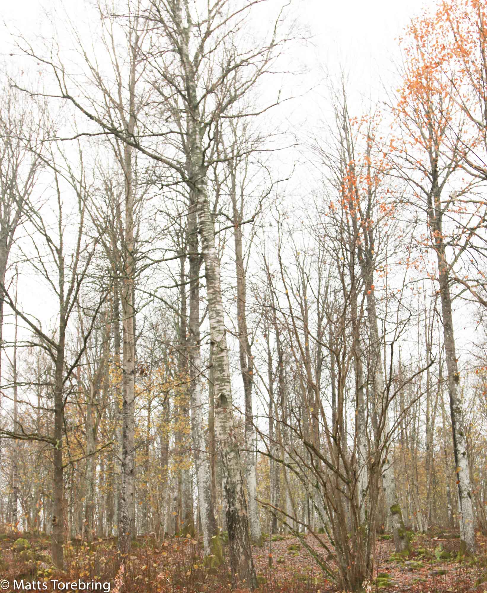 Vi går förbi lövträden i skogen, som är helt avklädda all sin vackra grönska, nu är de inte så vackra längre.