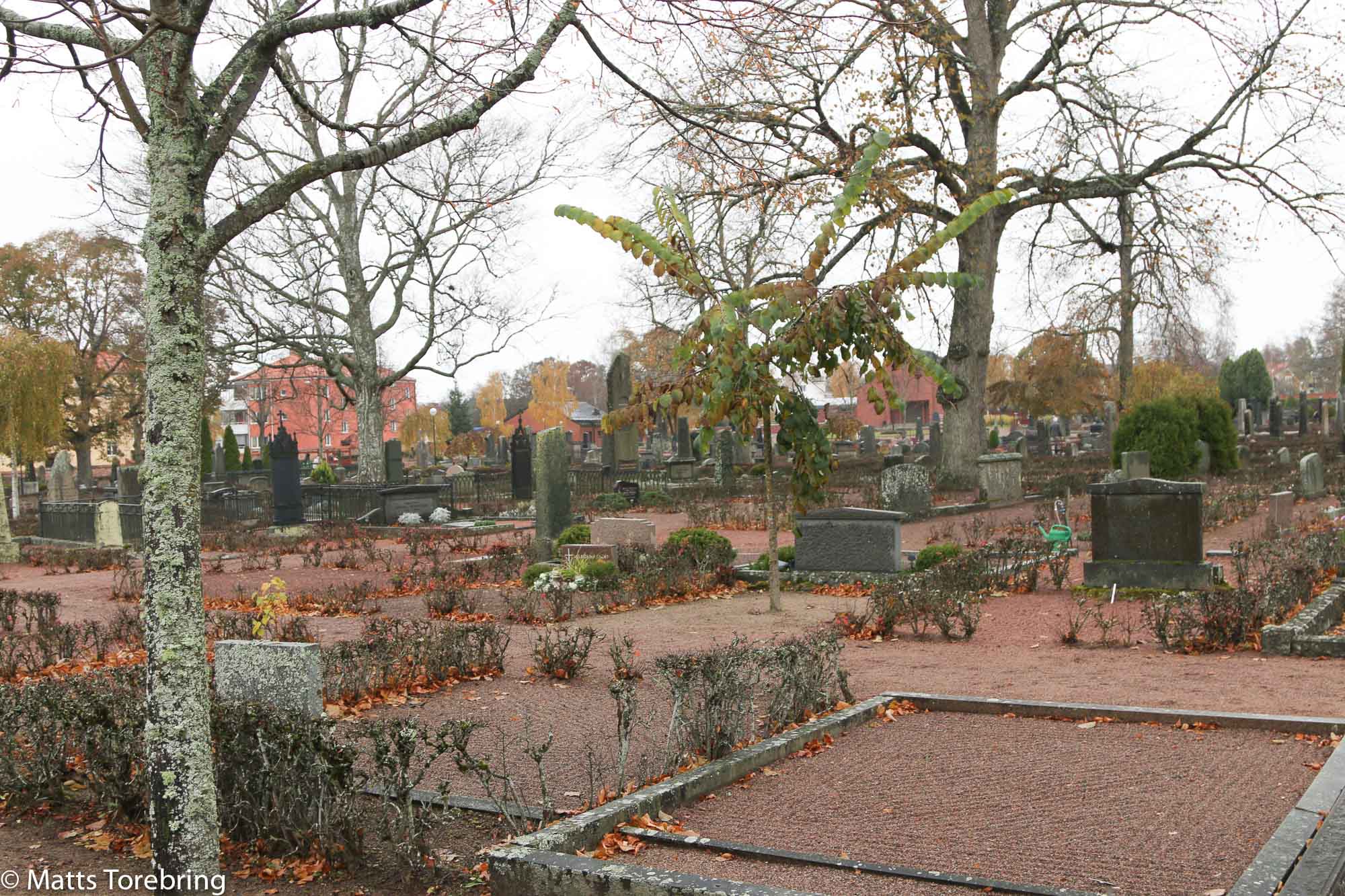 Vi går förbi Sankt Lars Kyrkogård i Eksjö som känns helt enormt stor, stor som till en storstad. Vi har rullat förbi här, under hela min levnad. Jag minns dock inte att vi har tittat in här tidigare. Det känns väldigt välskött och fint härinne.