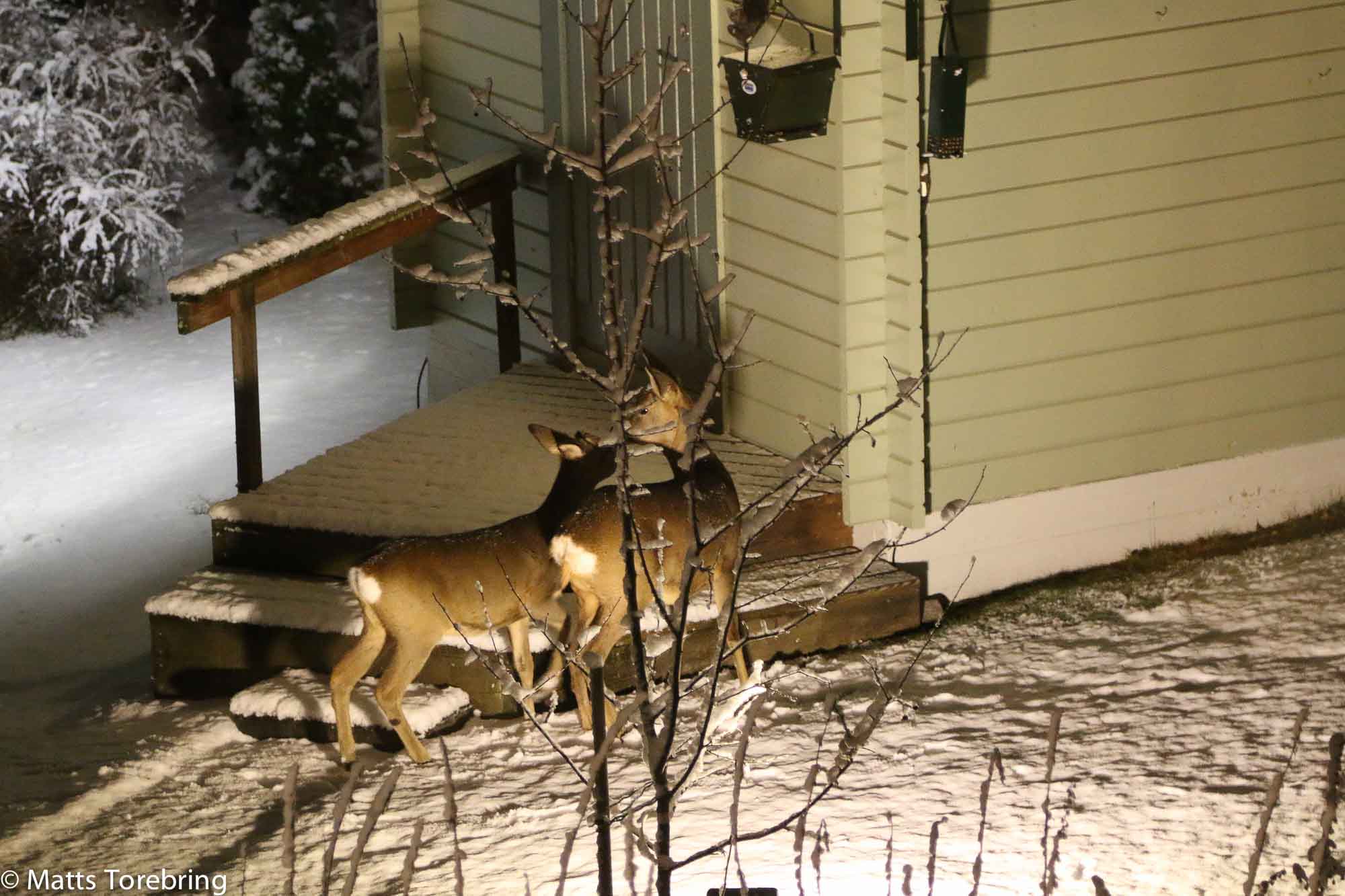 Nu är vinterdäcken på bilen. Vad trevligt ni har att få besök av rådjuren,