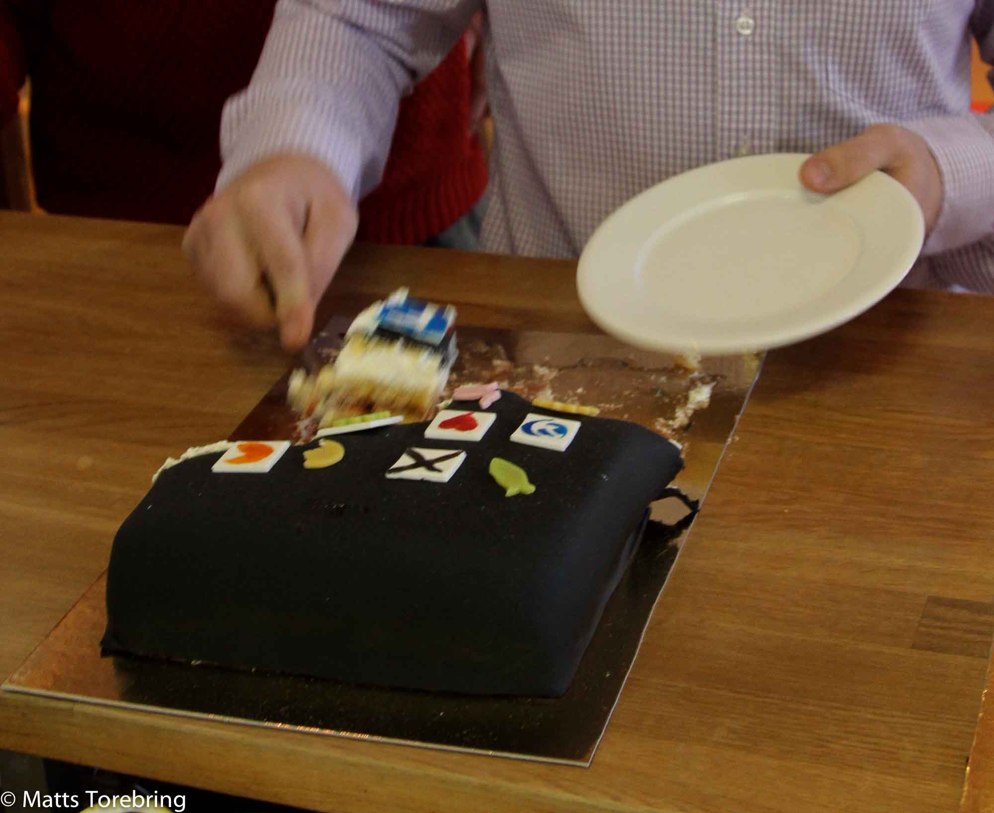 Här lyfter märkligt nog, en av våra medarbetare bort just ”Facebook” från tårtan. Jag har gjort det jag också, under hösten. Jag ställer mig frågan, ska jag också lyfta bort Facebook eller bara undvika? Själv har jag inte, vart inne på Facebook på flera månader och ändå klarat mig bra. Kanske kommer jag att titta in när jag hinner, men mera sällan kommentera.