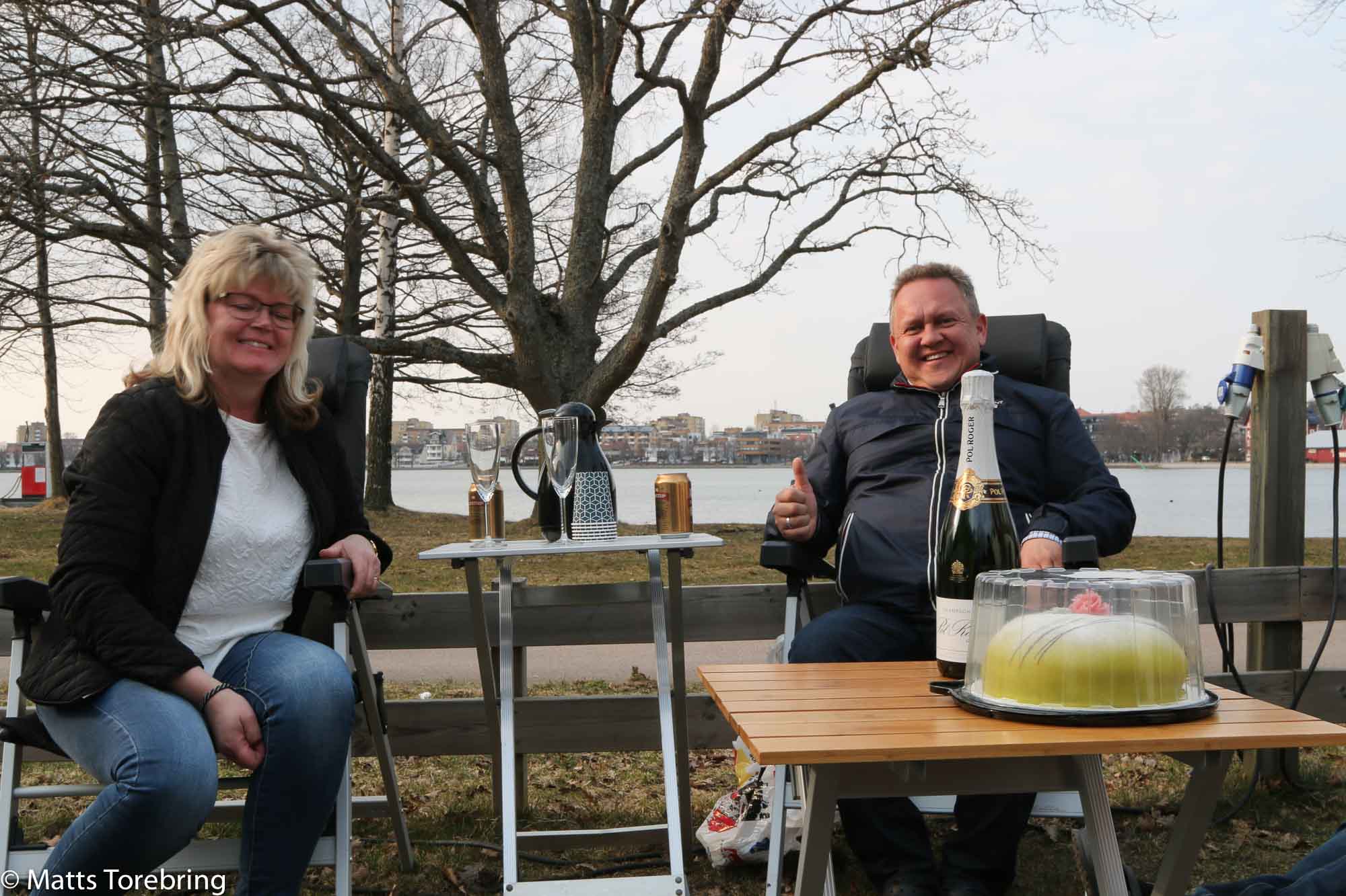 Vi hade med oss en liten tårta och vännerna bjöd på champagne.