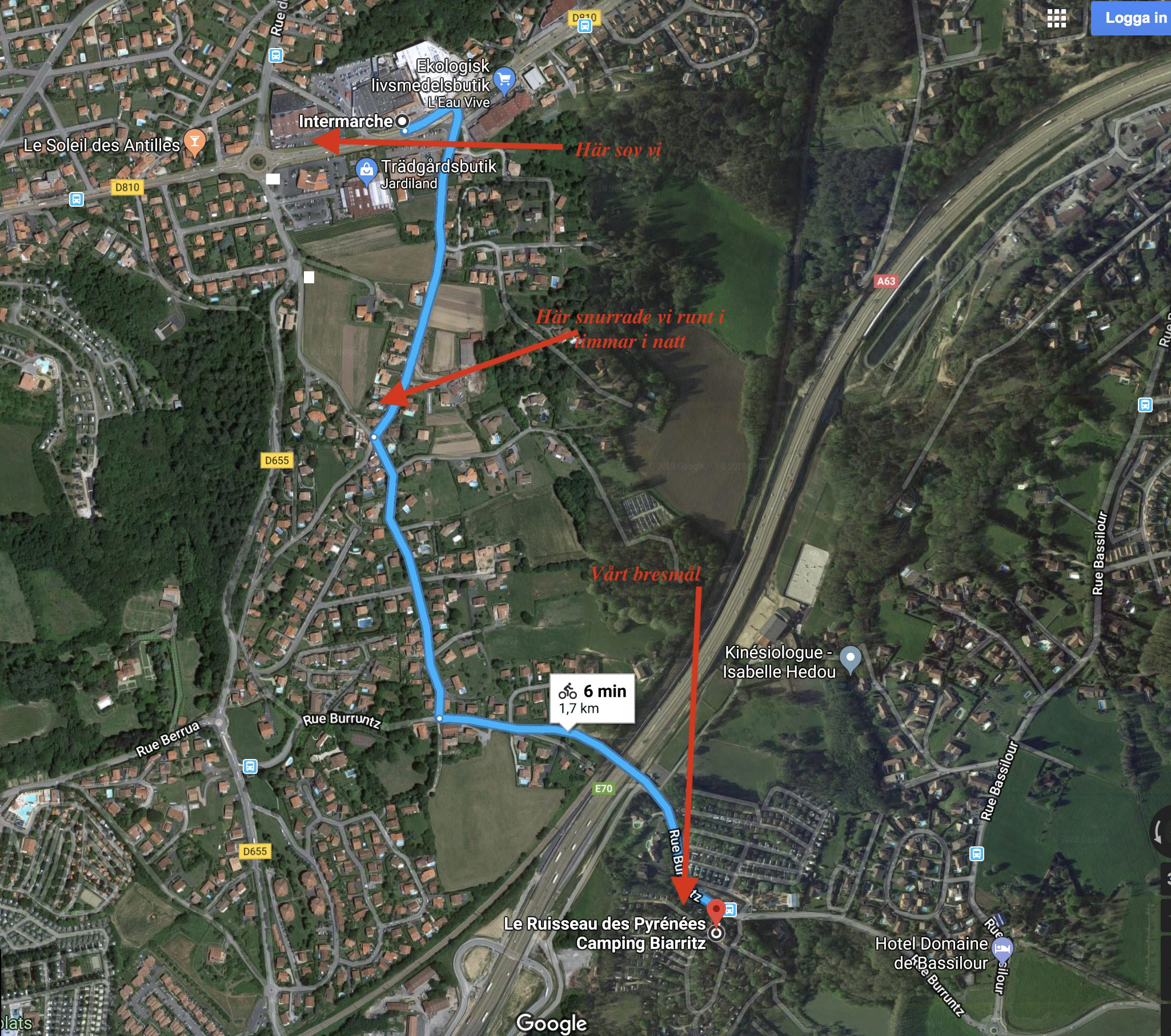 Vi lämnade Troyes vid halv åtta tiden. Vi stornjöt av de fina franska vägarna. Vi hade räknat med att vara framme i Biarritz 12 timmar senare, vi hade ju bara knappt 900 km att köra på bra vägar med en fantastisk bil.