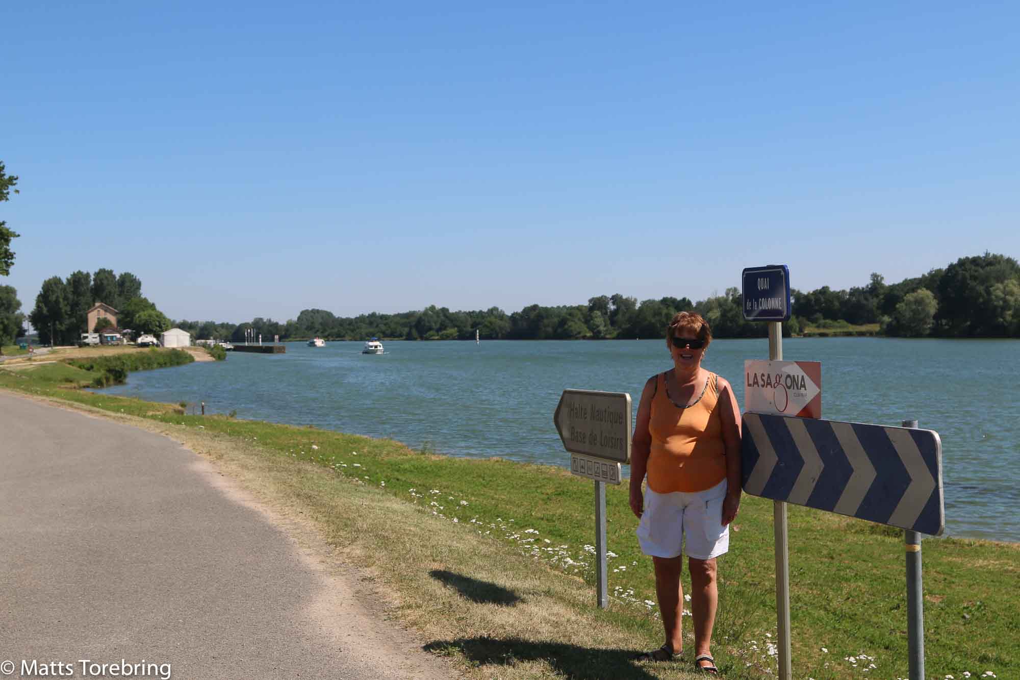 Bara ett stenkast utanför campingen flyter denna stora flod fram. Det blir nog en cykeltur utefter floden. På kartan ser det ut att finnas cykelväg ända ned till Lyon, 120 km bort.