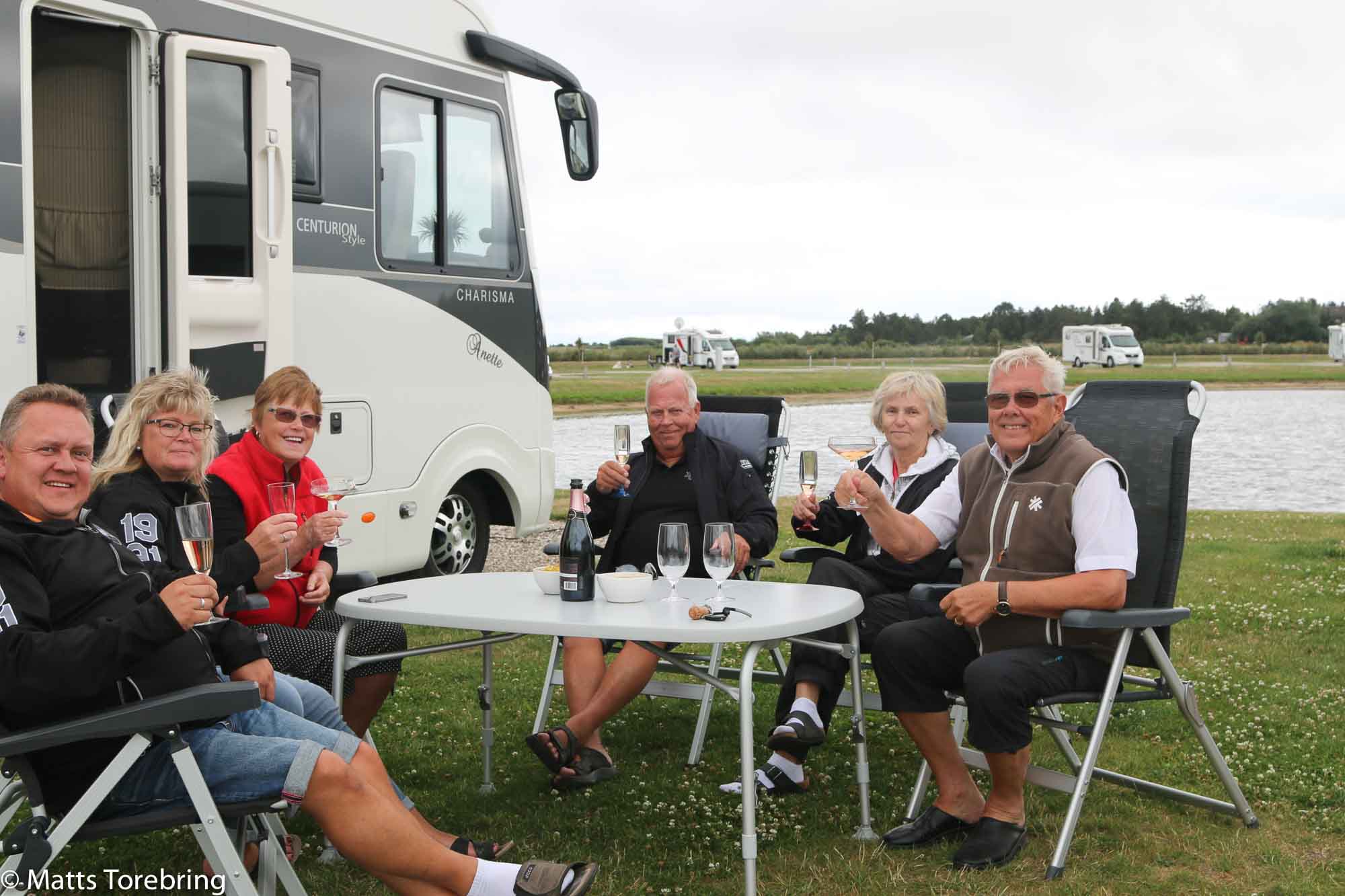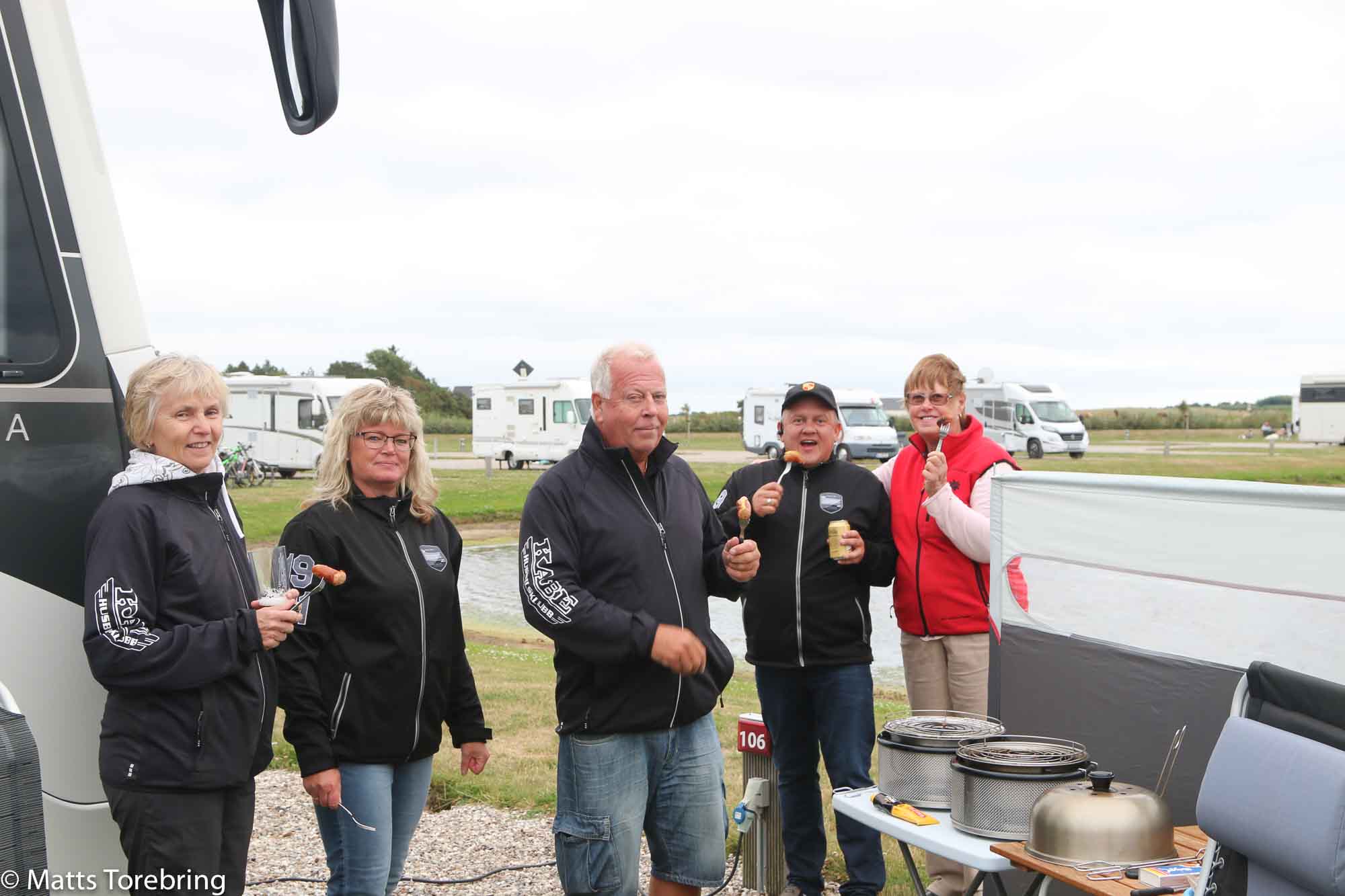 Vi drack kaffe, grillade korv,  kött och hade jättetrevligt i över åtta timmar, efter att vi gått igenom alla avigsidor på ställplatsen. Vilken trevlig eftermiddag, trots det kyliga vädret ute. Tack vänner, vi önskar er allt gott på er semesterresa.