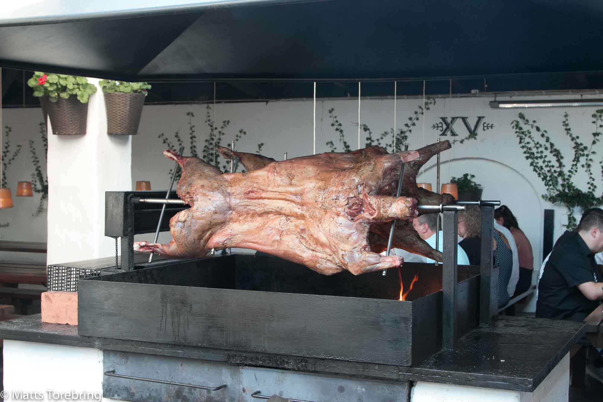 Lammet & Grisen förbrukar så mycket kött, att det grillas säkert på annan plats. Det som snurrar i restaurangen är nog mest för att mätta ögat. Vi älskar vår Herden!
