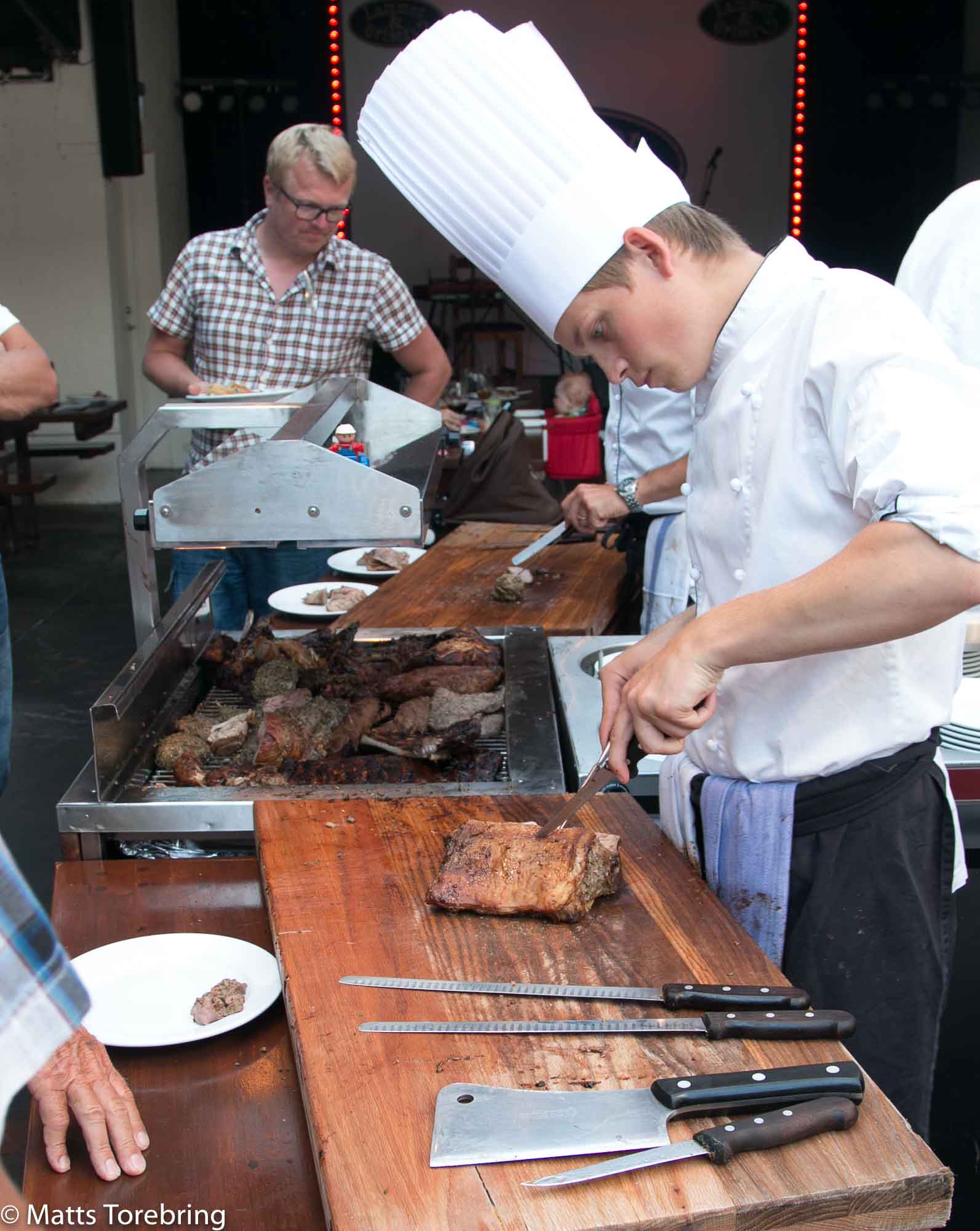Kön fram till de fyra kockarna som skär upp kött.