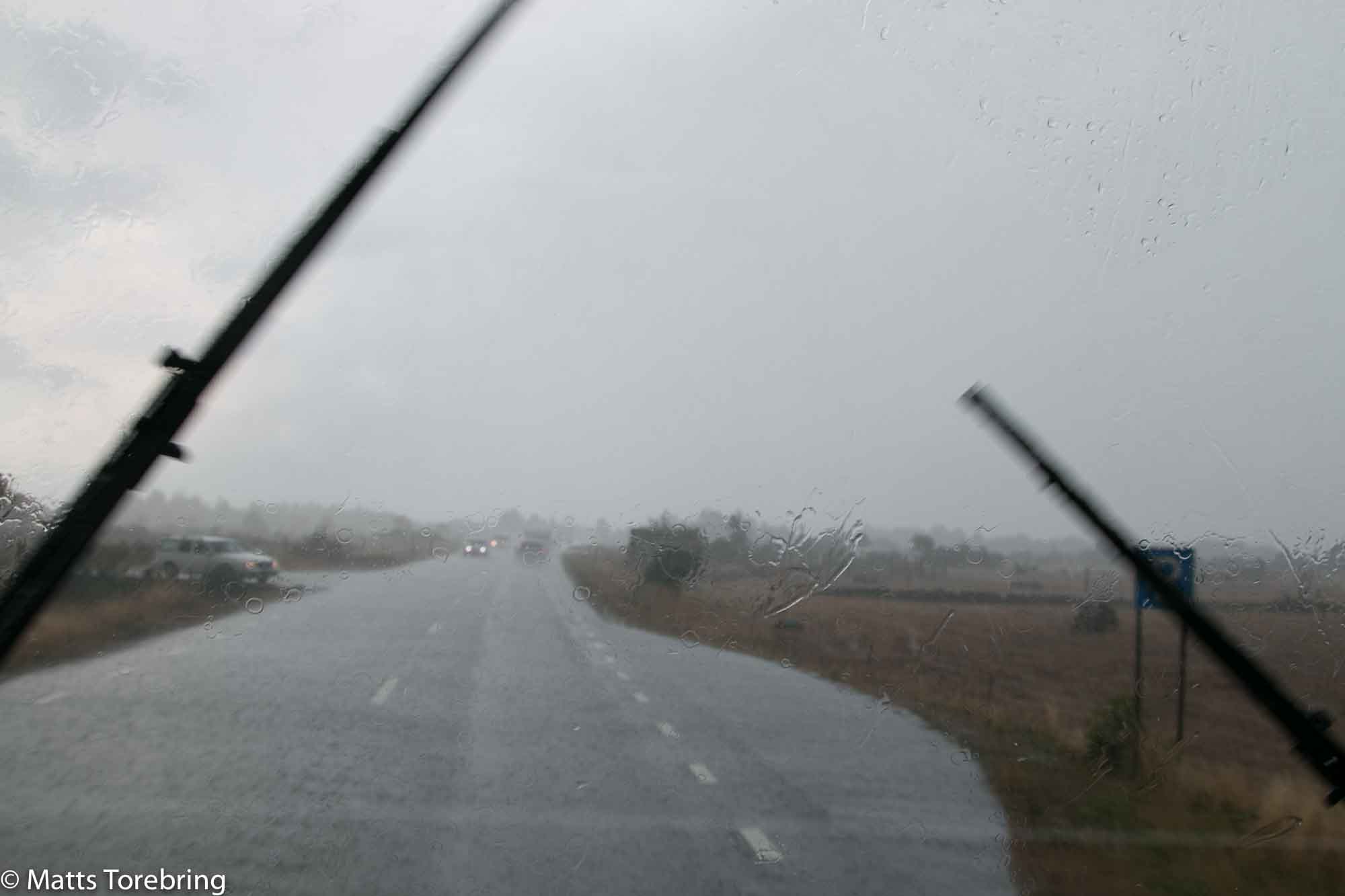 Vi hann inte långt förrän regnet kom och mötte oss.