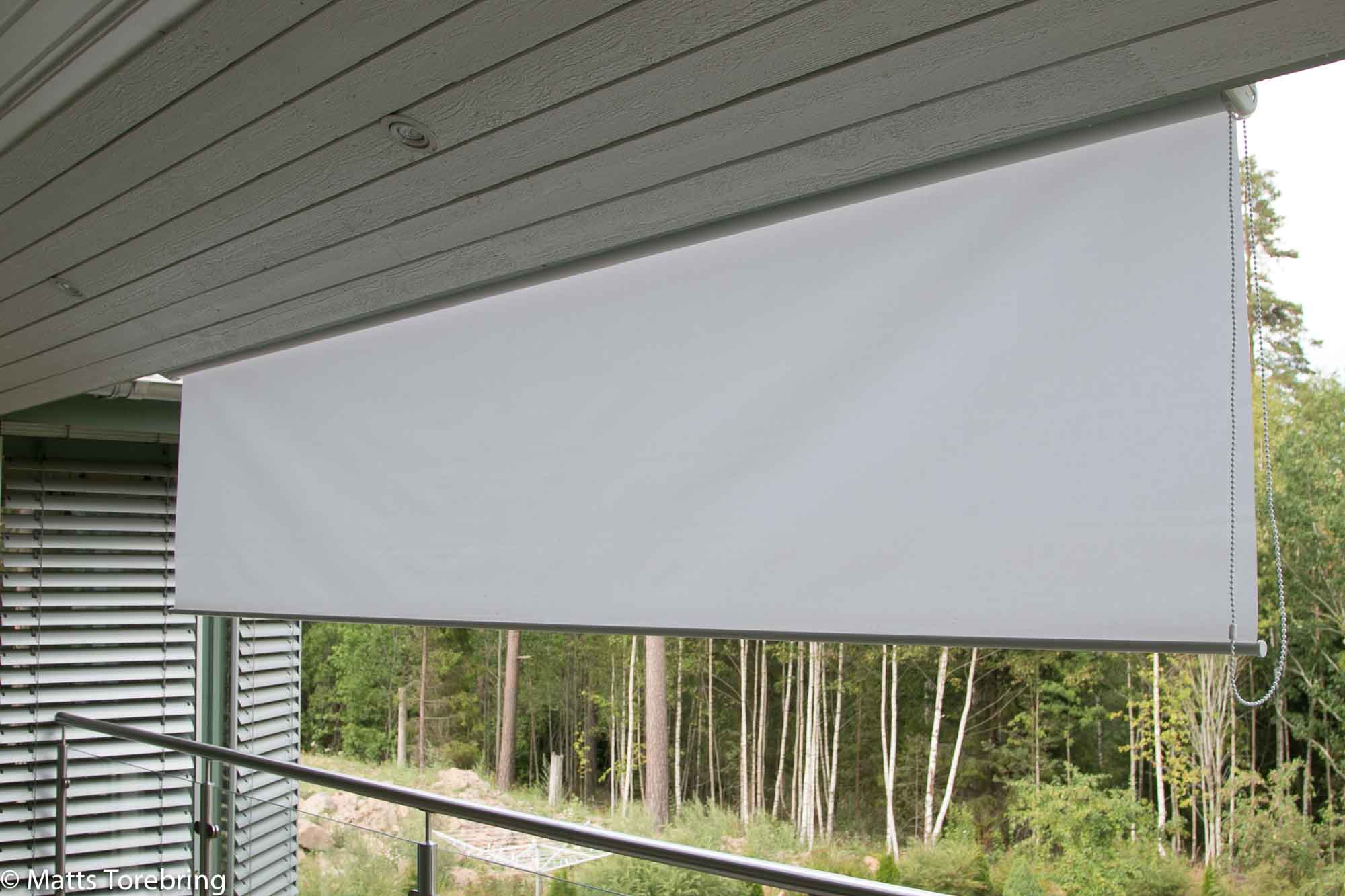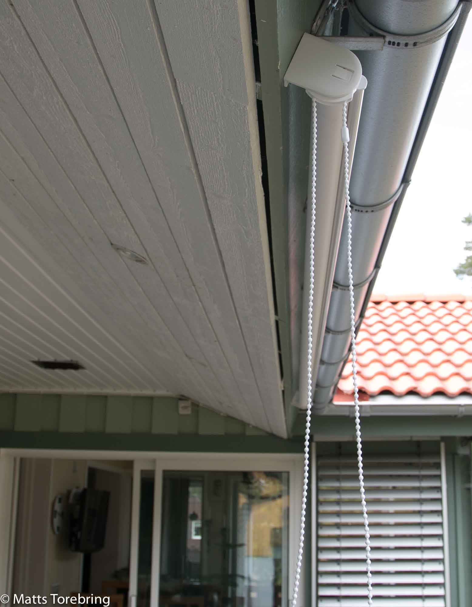 När vi trots allt är hemma vid något tillfälle, går det oftast inte att ens dricka morgonkaffe på vår altan, på grund av solen i ögonen. Någon gång har jag hängt upp ett lakan, för att få lite solskydd, men hur roligt är det? Så kom denna rullgardin igår och vips så var den uppsatt, utan att läsa bruksanvisningen. Sådant gillar jag.