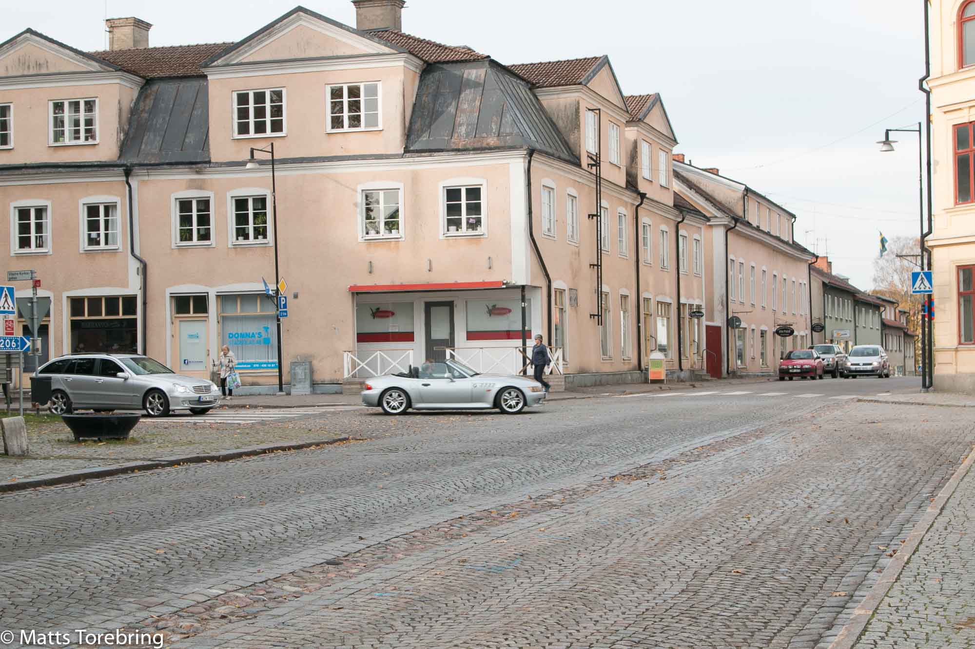 Här kom riksväg 50, från Mjölby och rundade hörnet, vid vita sportbilen. Hur många gånger har jag snurrat runt här? Oräkneliga gånger!
