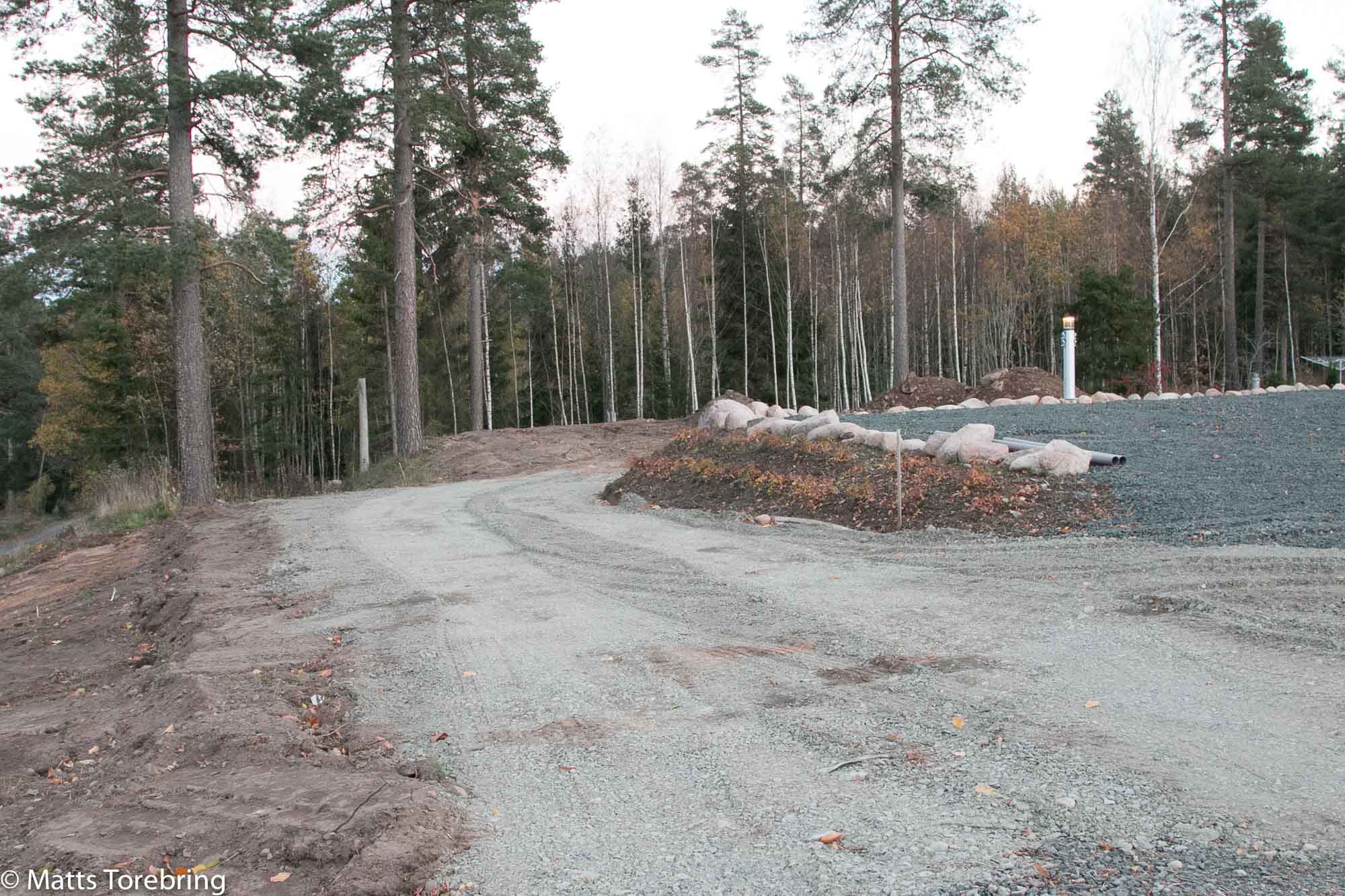 Inte bara en fin väg till garaget. Till vänster om vägen, har Göran grävt ett dike, som han återfyllt med matjord. Där skall jag göra en fin plantering, men det känns för sent, att göra i höst. Nu hoppas jag, att inom kort, få köra ned vår husbuss här.