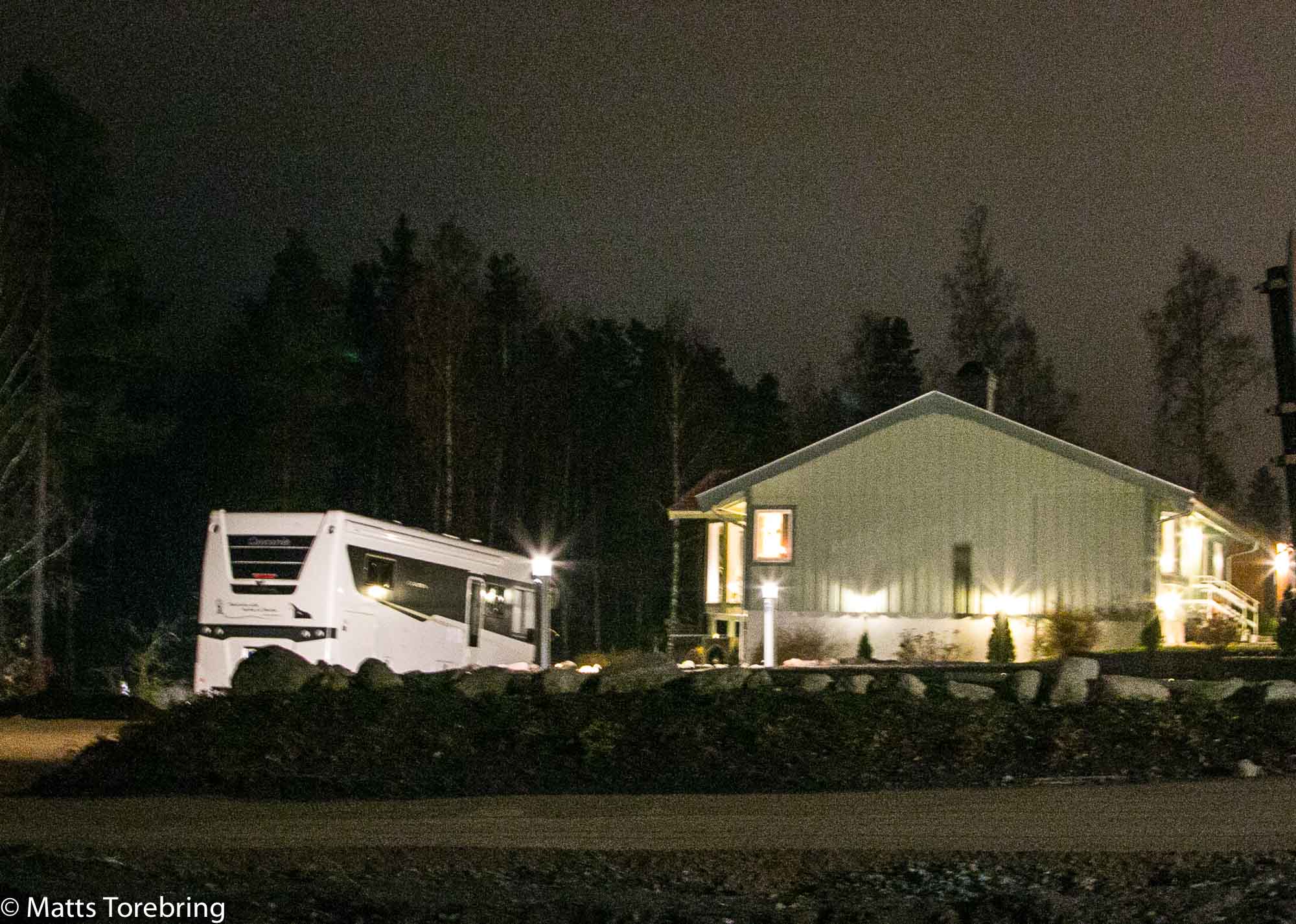 Vi kommer att kunna lasta från bottenvåningen, rakt fram till bussen. SÅÅÅ bra det blev! Detta överträffar alla mina förväntningar. Nu behöver jag inte trängas längre på garageinfarten, vara rädd för att backa emot, att snöslungan skall gå emot, cm trångt mot häcken, nu har jag en stor plan att röra mig på. Dessutom står bussen parkerad två meter under gatans nivå, ett bra stycke ned i skogen och (bör inte) störa någon längre.