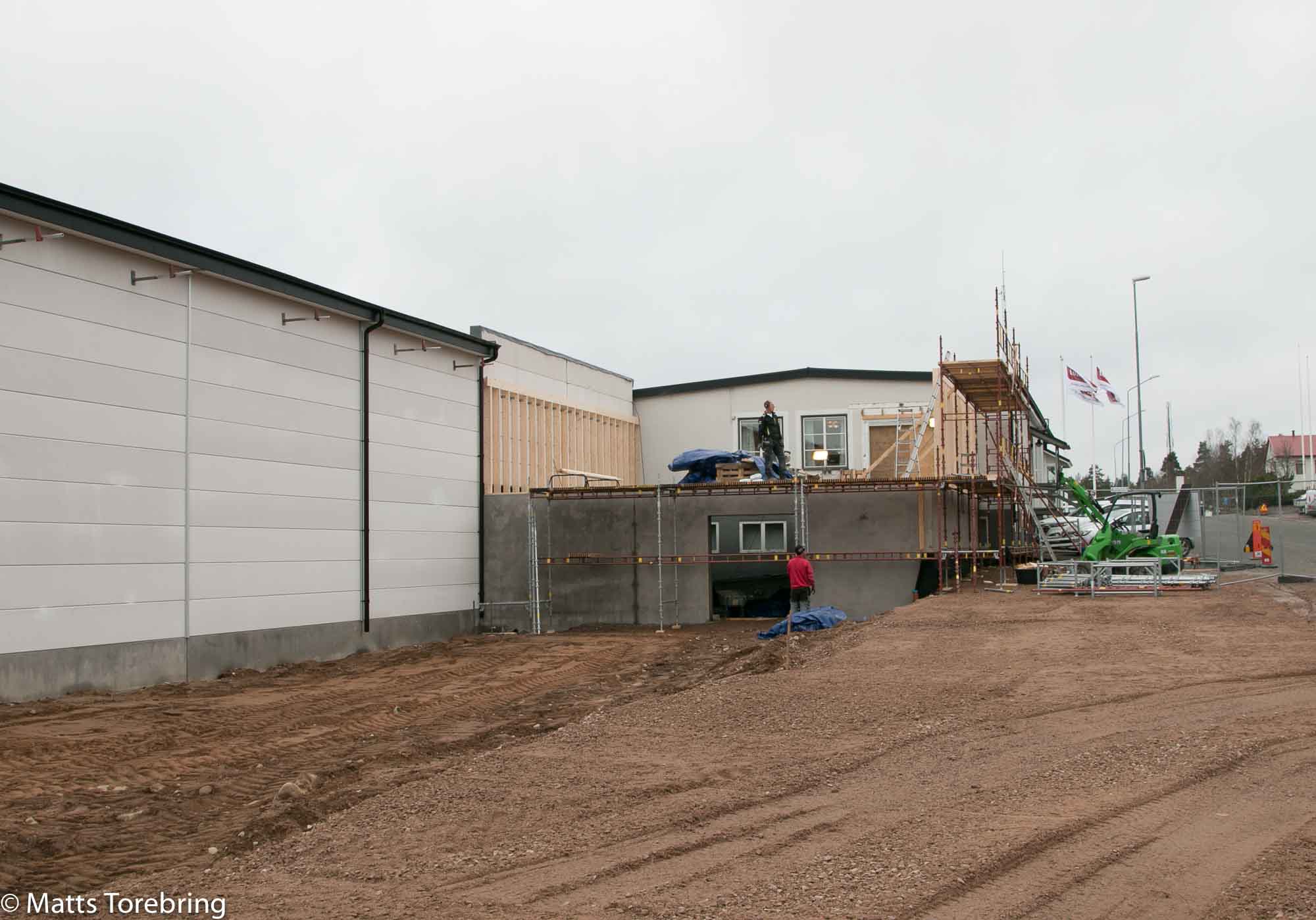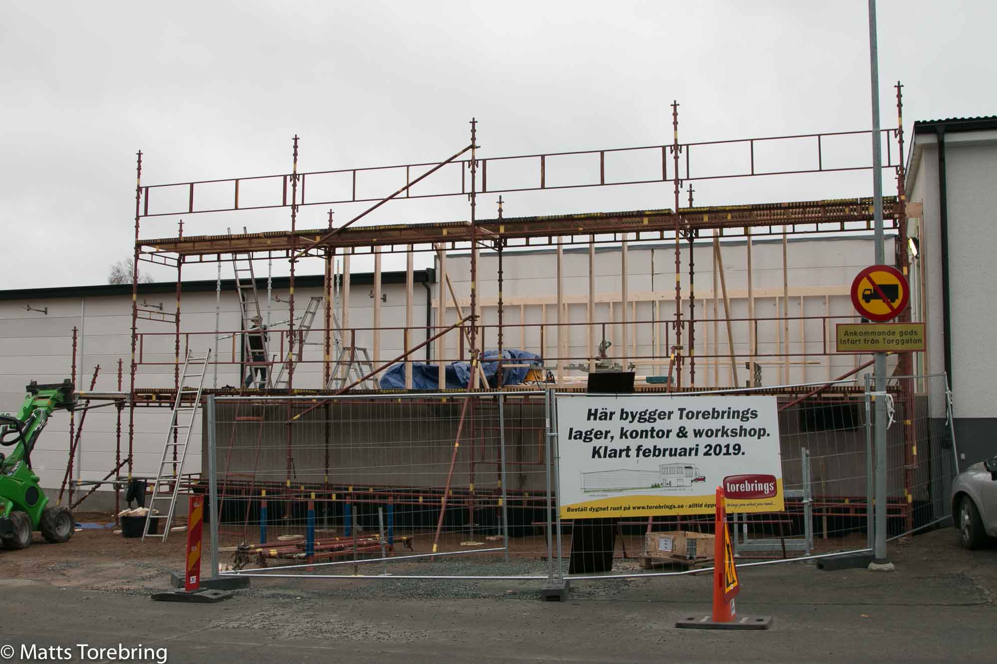 Nu händer det saker på vårt stora bygge på Torebrings. Infarten till vår Workshop börjar ta form, parkeringsplatserna är snart användbara och två bärande kontorsväggar är redan uppe. I morgon kommer takstolarna.