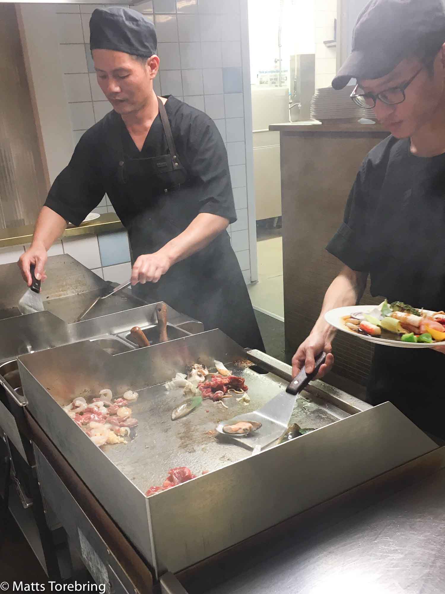 Stackars kockar att komma hem en kväll efter detta. De måste vara doftande, vandrande Mongoler, efter en kväll vid stekbordet.. Duktiga var de i alla fall, så jättegott det var.