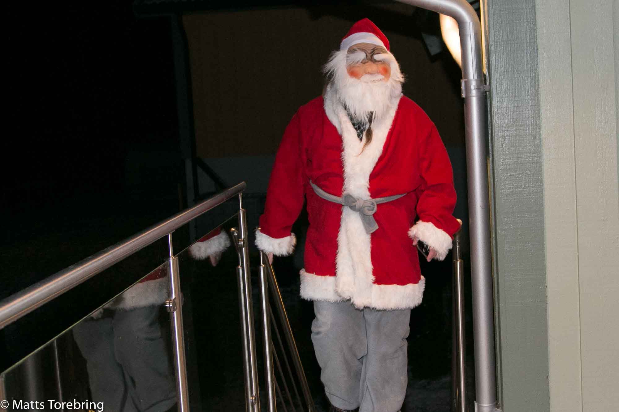 Det tisslades och tasslades, det smögs med telefoner och sms…. Var tomten verkligen upptagen i år… Hade tomten blivit sjuk… Till slut hörde alla att det tjoade nere i skogen… Var det tomten som kom? Ja äntligen!