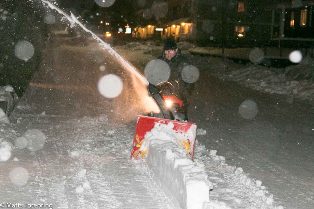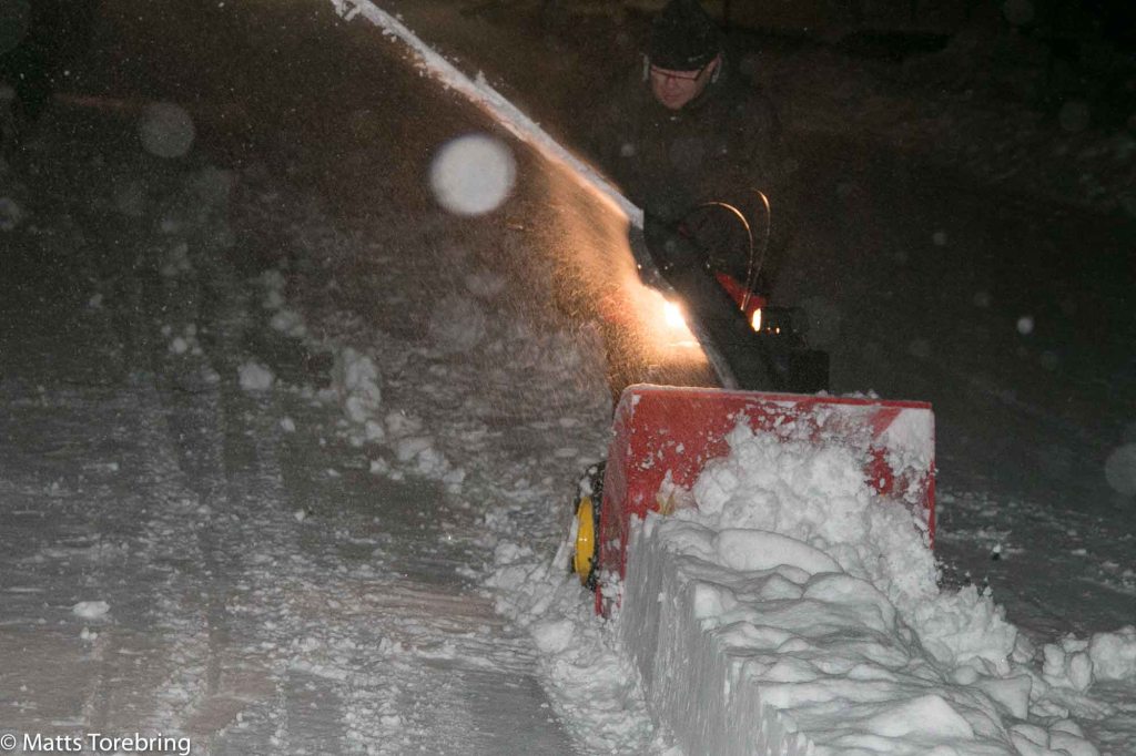Trots sina dryga 118 kg var den hur lättmanövrerad som helst. Det var som att ställa in sommarcykeln i garaget. Med styrbroms snurrar den runt på fläcken. Med ett joystick styr jag enkelt hur jag vill kasta snön. Men oj vad långt snön for iväg.